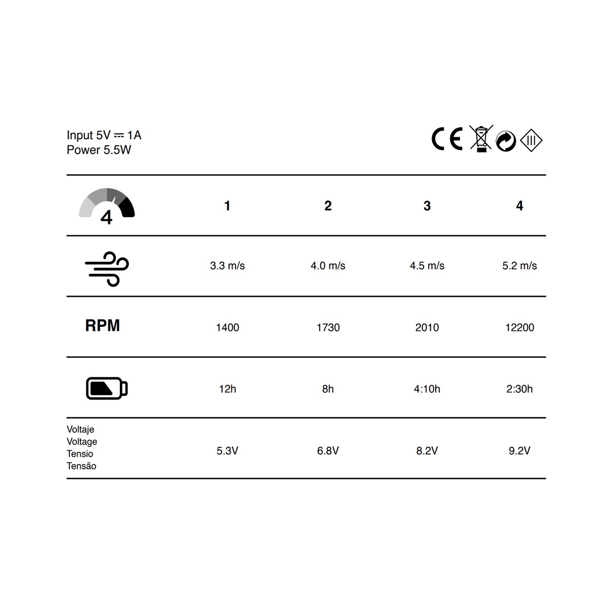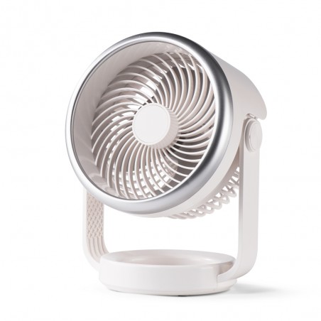Ventilador de mesa con batería recargable Split . El ventilador cuenta con cuatro velocidades de flujo de aire y batería recargable para utilizar sin necesidad de cables.
