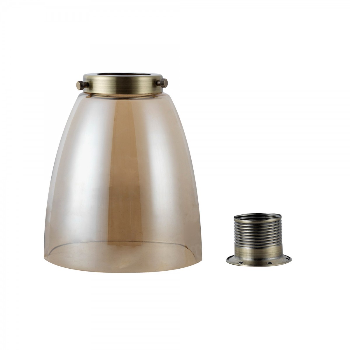 Coupe en verre dorée avec rondelle en finition vieil or. Idéal pour être placé avec des ampoules et des douilles de lampe de style vintage.