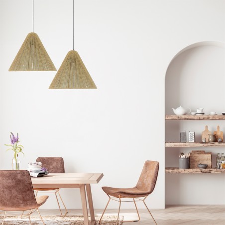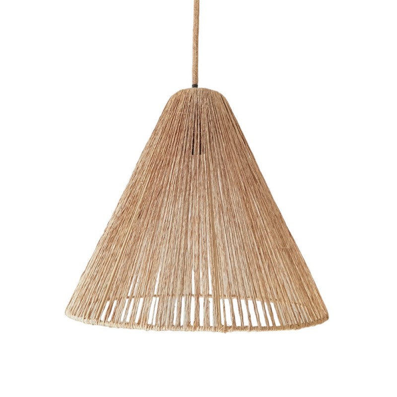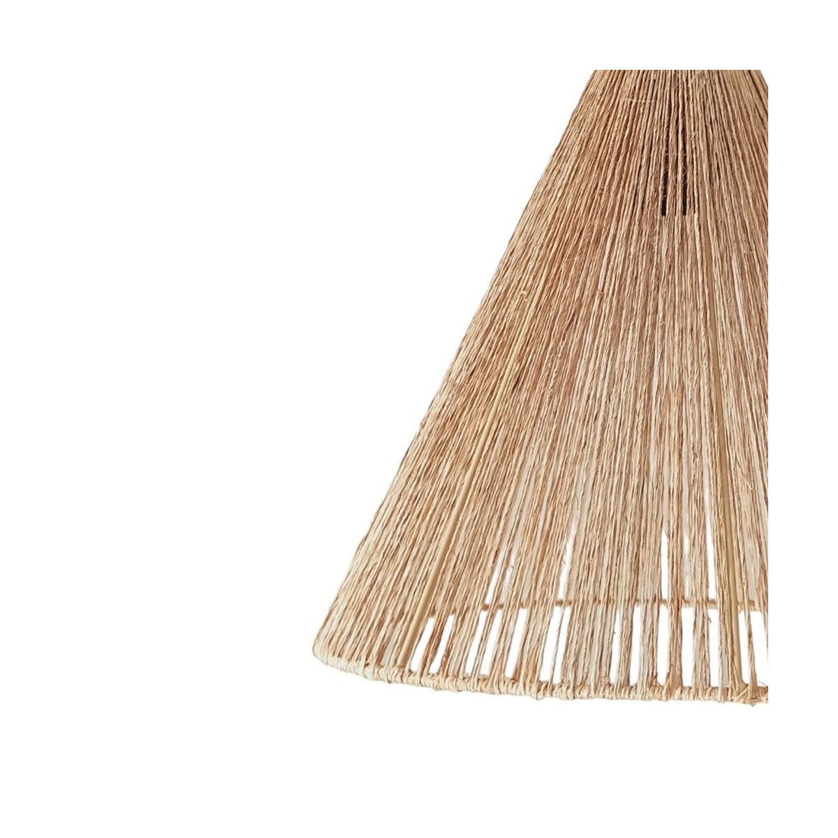Abat-jour en jute naturel Male Big. La structure de l'abat-jour est recouverte de fines ficelles de jute naturel, ce qui donne à l'abat-jour une touche et un style uniques. Fixez une suspension de plafond E27 pour créer une lampe suspendue boho chic pour votre entreprise. Hauteur de 30 centimètres et diamètre inférieur de 34 centimètres.