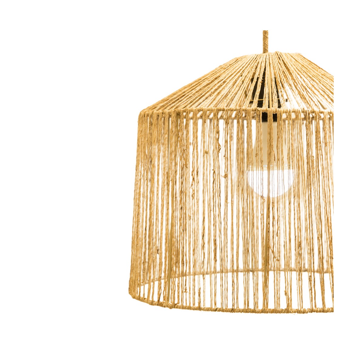 Abat-jour de lampe de plafond Lidu. Cet abat-jour est composé de fines cordes de jute qui lui confèrent une touche bohème naturelle unique. Fixez une suspension E27 au plafond pour créer une lampe suspendue boho chic pour votre entreprise. Étant ouvert, l'abat-jour peut également être associé à une ampoule à filament décorative ou à un abat-jour en verre ambré.