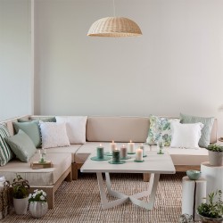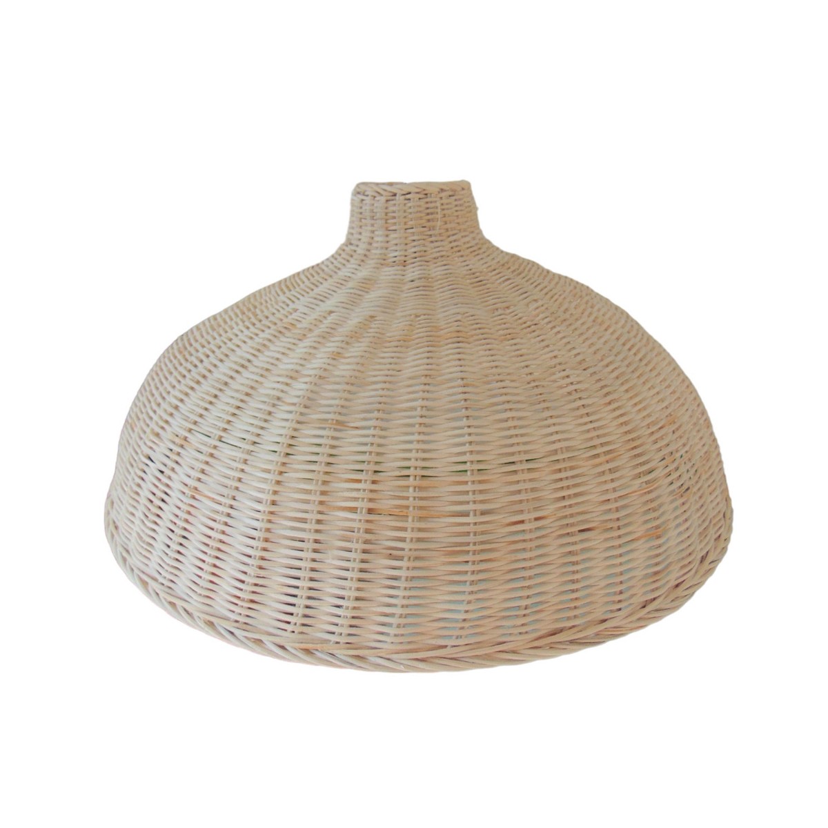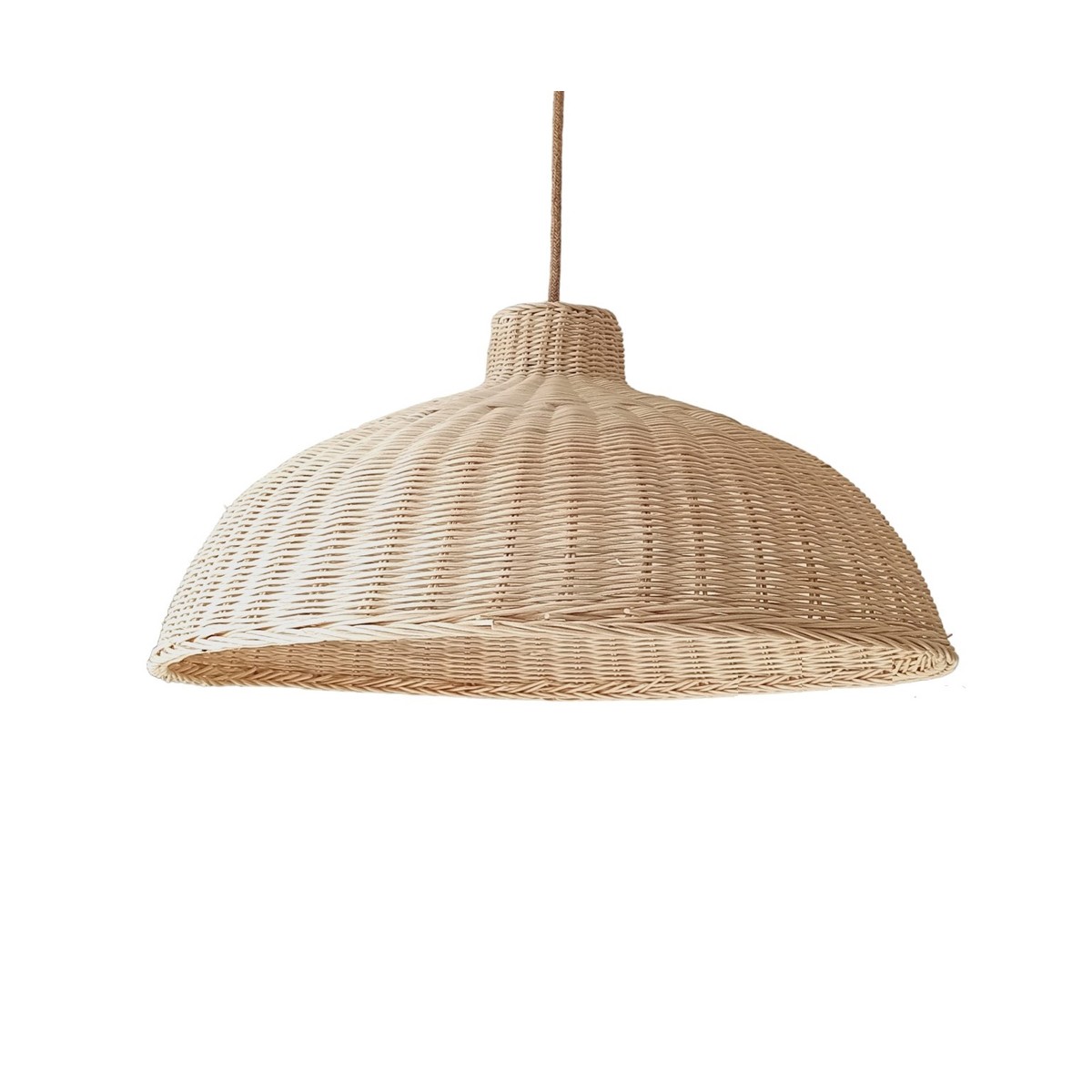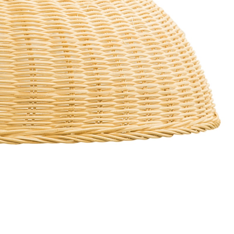 Abat-jour en rotin naturel Addu. Abat-jour en rotin de couleur claire conçu pour donner une touche boho chic à un salon, une chambre ou une cuisine. D'un diamètre de 58 centimètres, il est très pratique à placer sur une table ou à un endroit précis de la pièce. Il doit être associé à un support de lampe suspendue E27.