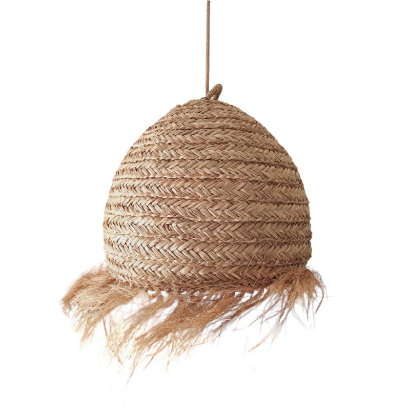 Abat-jour en algues naturelles palmées. Abat-jour fabriqué à partir de fibres d'algues naturelles, créant un abat-jour décoratif boho chic. Combinez cet abat-jour avec un porte-lampe noir ou une corde pour créer un lampe de plafond. Cet abat-jour est fabriqué à la main, le résultat final des fibres peut donc varier par rapport à l'image.