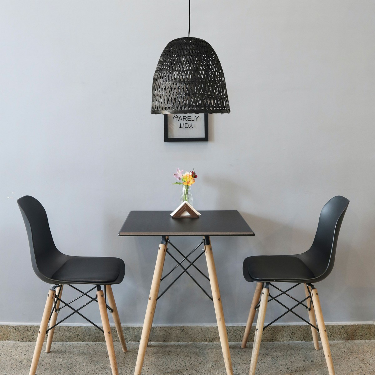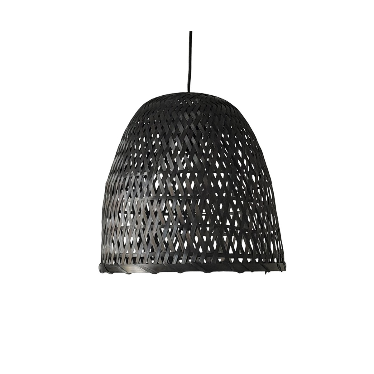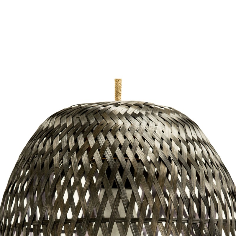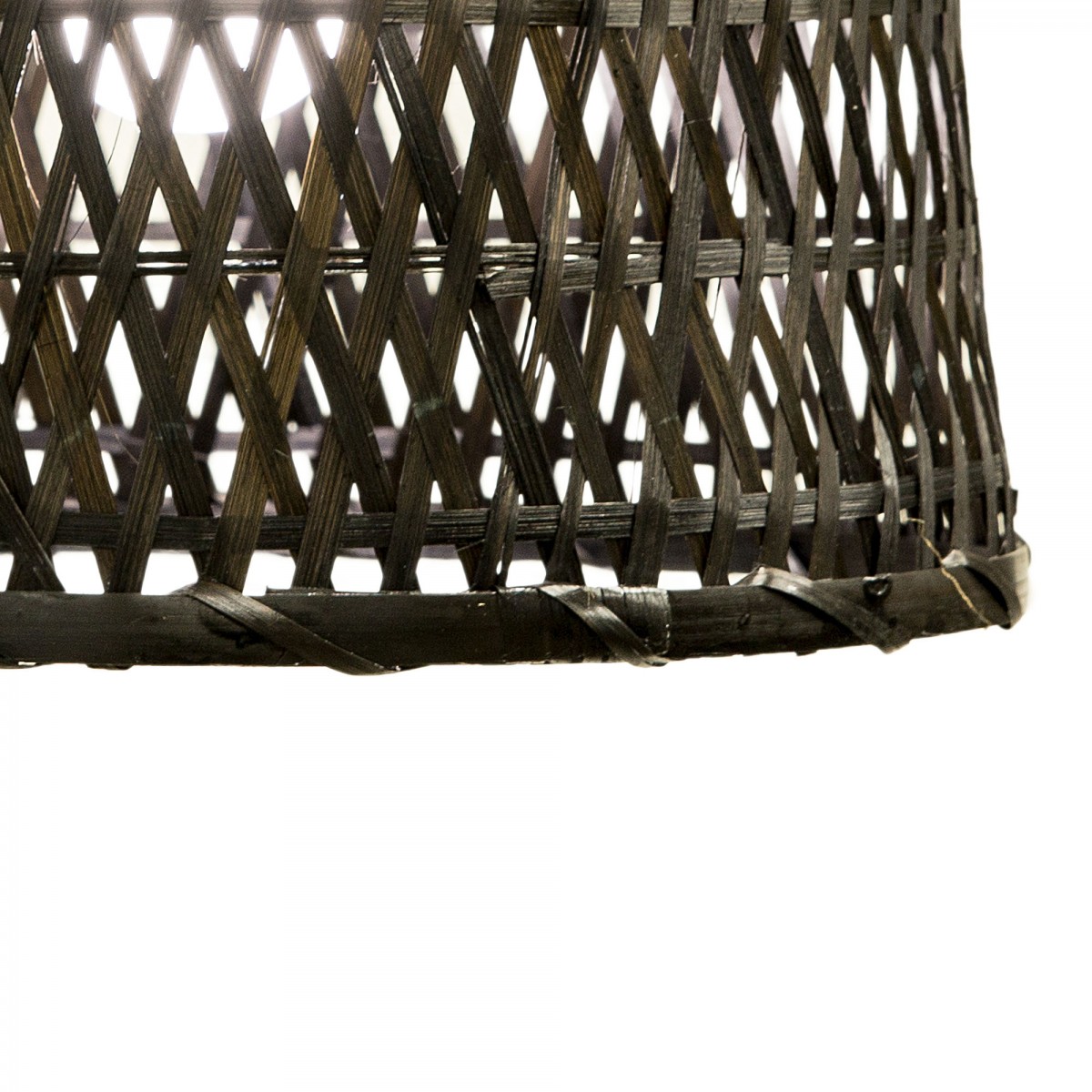 Abat-jour en bambou noir pour lampe de plafond. Conception en forme de dôme avec du bambou tressé permettant à la lumière de passer légèrement dans l'environnement. À combiner avec un support de lampe pour créer une lampe suspendue.