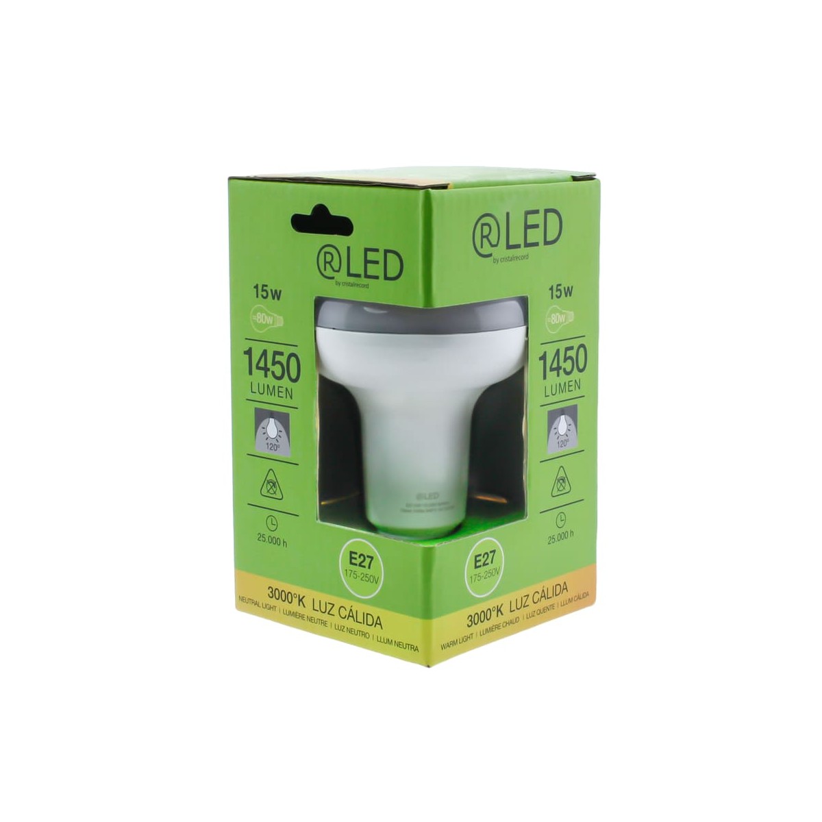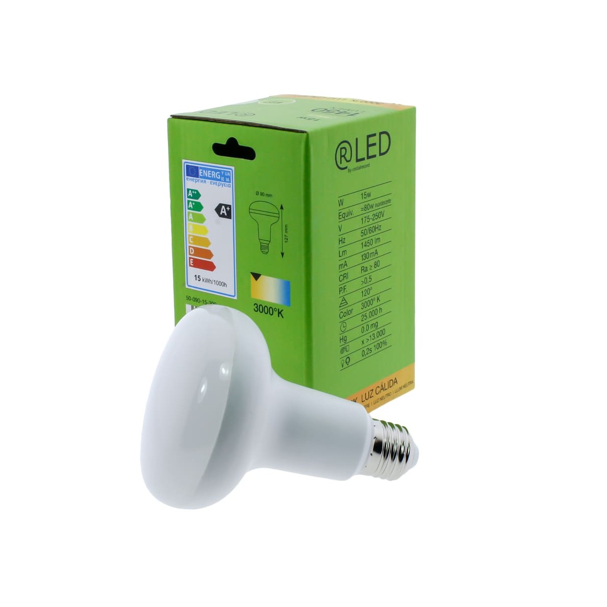 Ampoule Led E27 R90. Puissance de 15W avec un éclairage chaud de 3000K avec 120º d'ouverture.