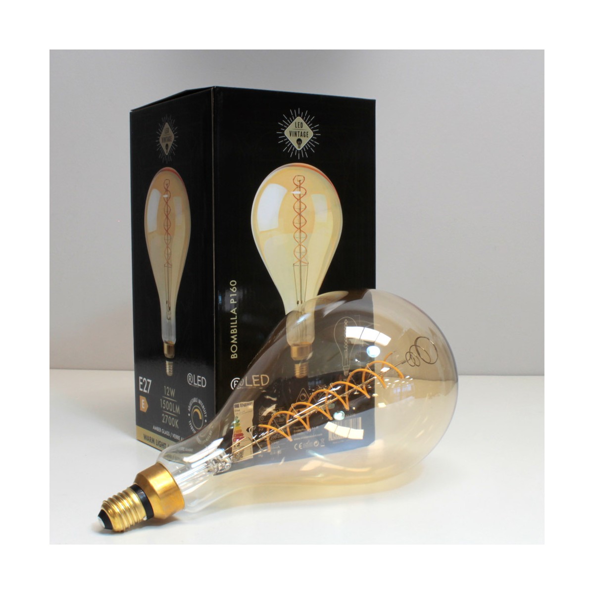 Ampoule décorative à filament P160, ampoule en verre doré avec filaments, idéale pour l'éclairage décoratif. LED 12W, 1500 lumens et température de couleur chaude (2700K).