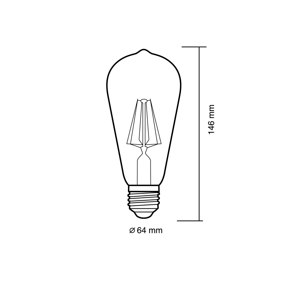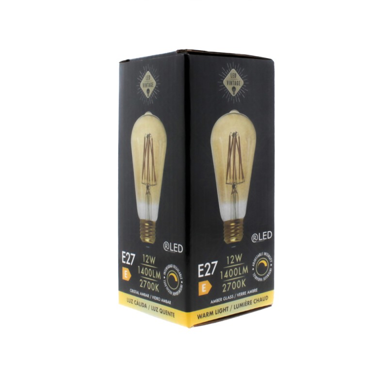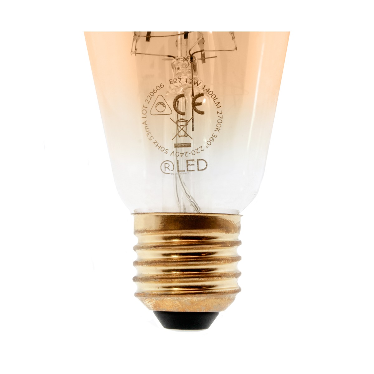 Ampoule décorative à filament standard. Ampoule en verre doré avec filaments, idéale pour l'éclairage décoratif. LED 12W, 1400 lumens et température de couleur chaude (2700K).