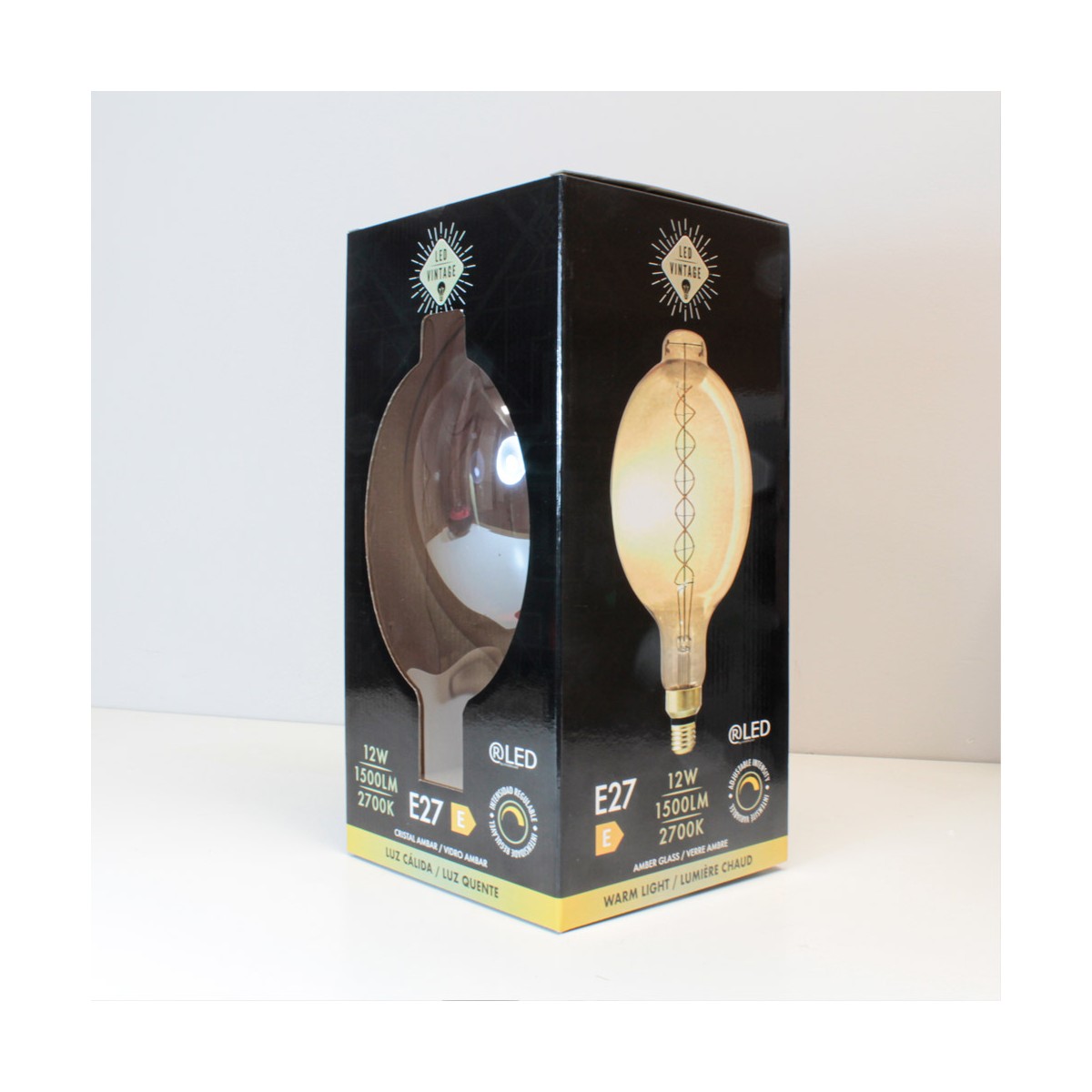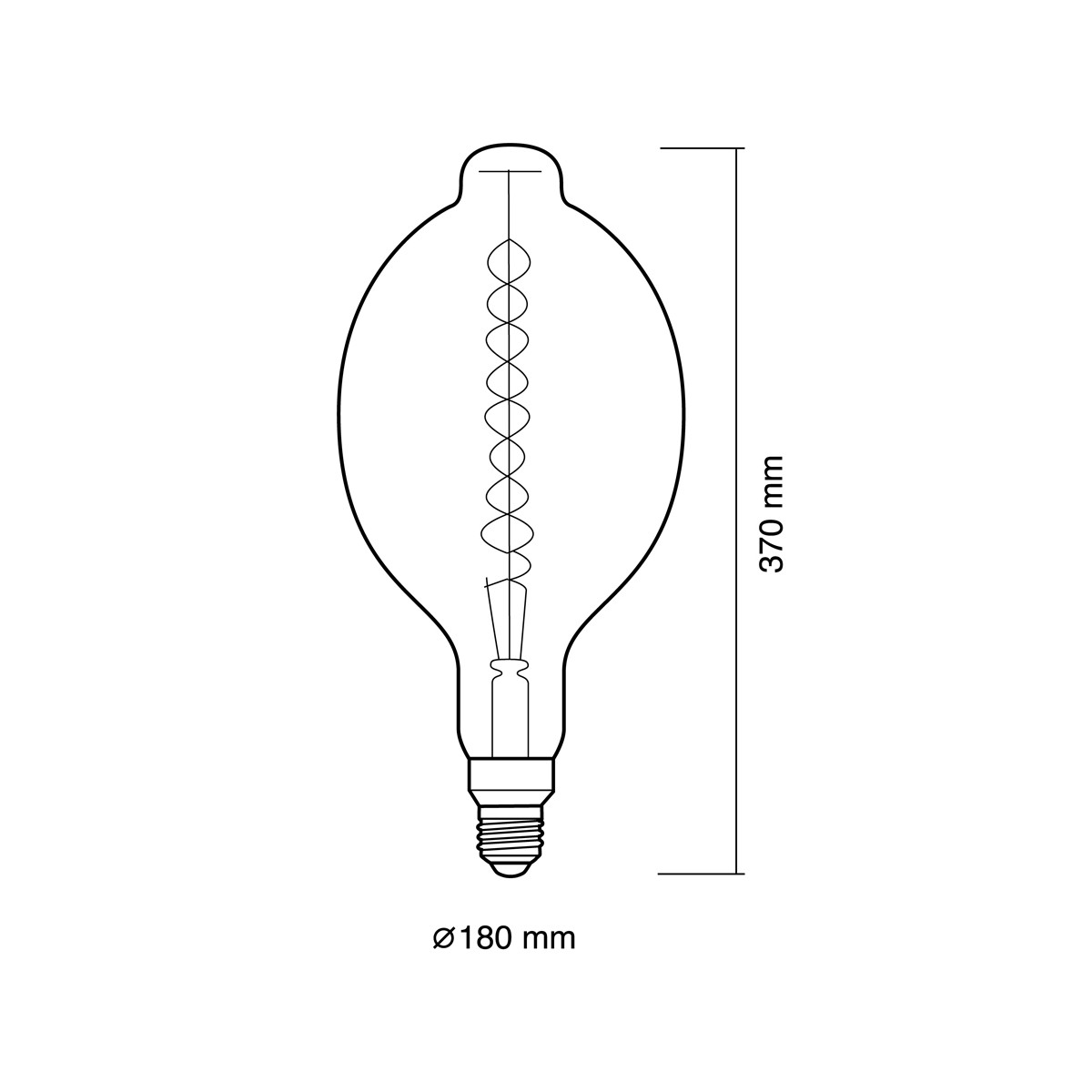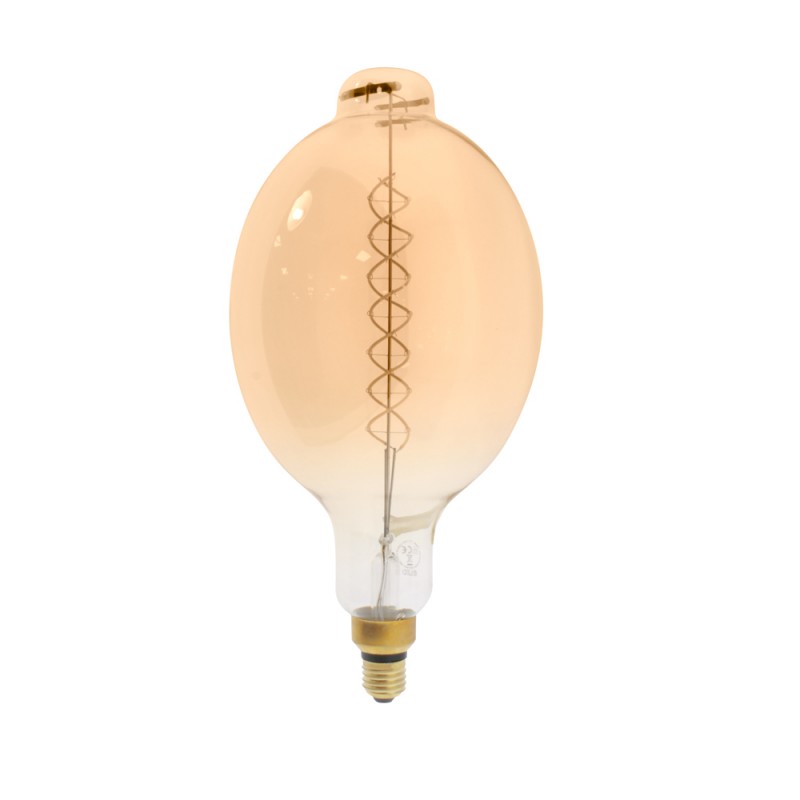 Ampoule décorative à filament de forme BT180. Ampoule en verre doré avec filaments, idéale pour un éclairage décoratif. LED 12W, 1500 lumens et température de couleur chaude (2700K).