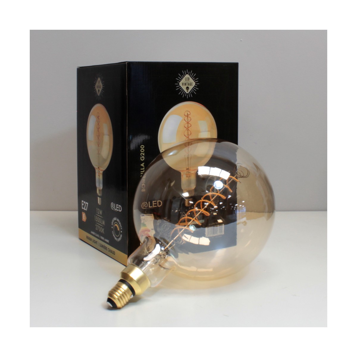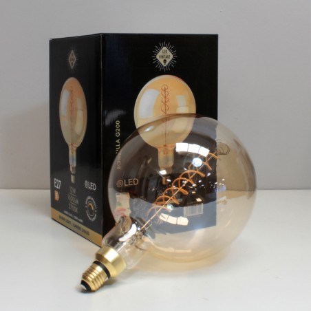 Ampoule décorative à filament en forme de globe G200. Ampoule en verre doré avec filaments, idéale pour l'éclairage décoratif. LED 12W, 1500 lumens et température de couleur chaude (2700K).