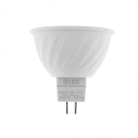 Ampoule LED GU5.3 MR16 avec une température de couleur de 6000K. Eclairage LED de 5W, 500 lumens et température de couleur blanc froid. Faisceau lumineux de 110º. Allumage automatique.