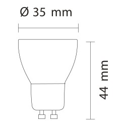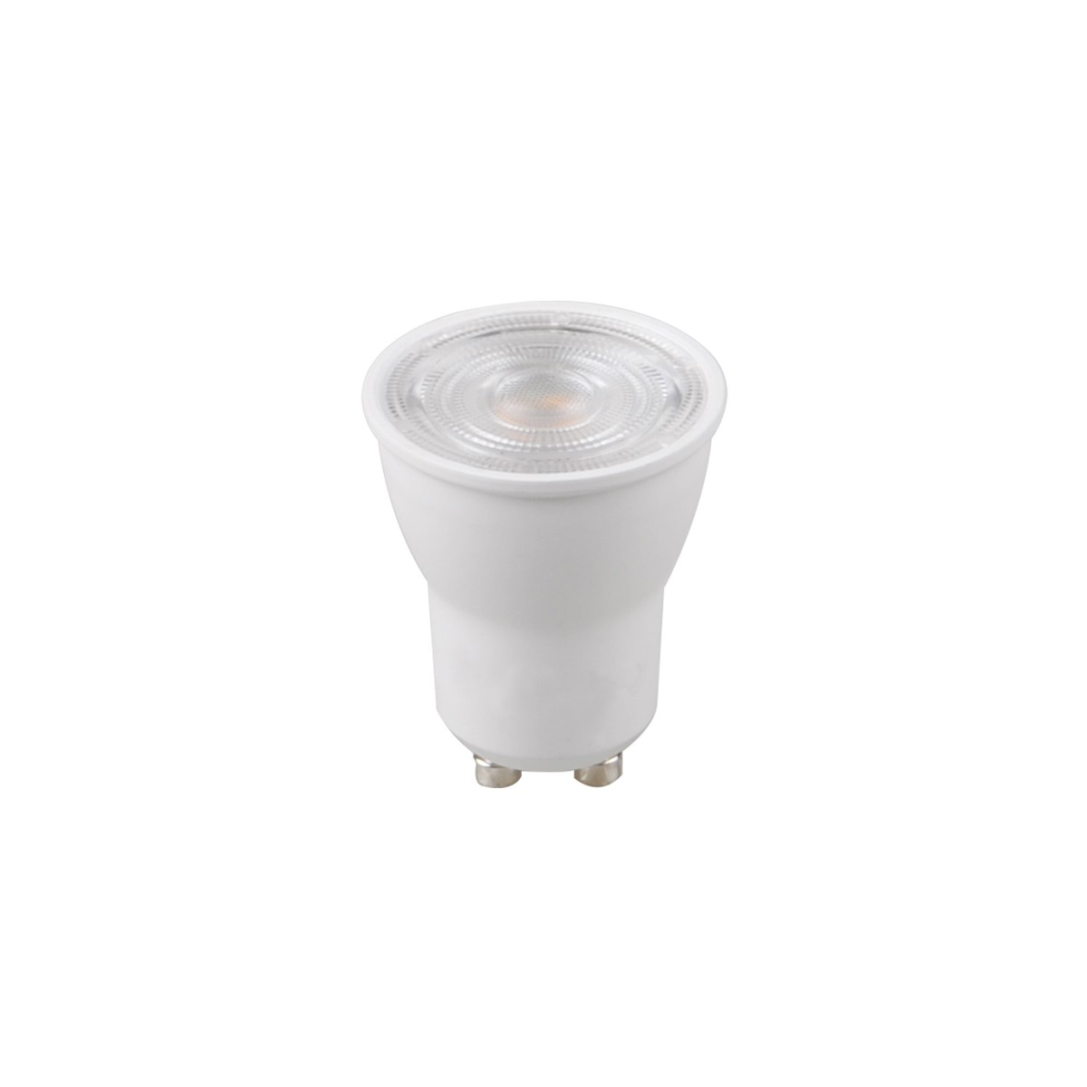 Ampoule GU10 Mini pour spots encastrés et compacts. Ampoule de 35 mm de diamètre avec un faisceau de 38º. Lumière LED blanc neutre de 3W et 270 lumens. Spécifique pour les spots encastrés et compacts.