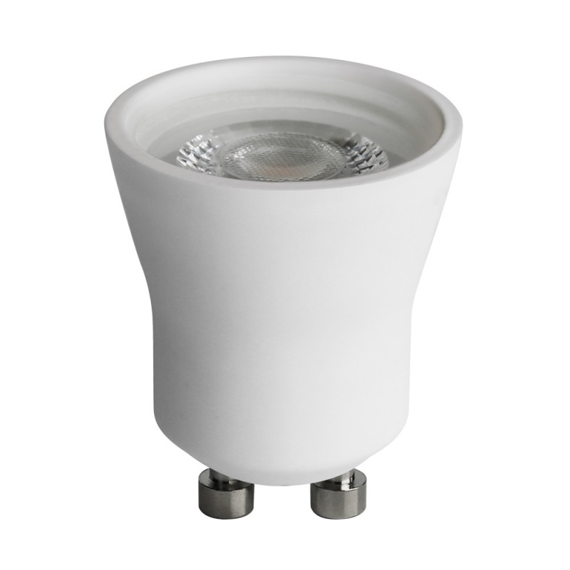 Ampoule LED GU11 en céramique. Ampoule de 37 mm et diamètre de 30 mm, idéale pour l'éclairage intérieur. LED de 4,9 W, 420 lumens et température de couleur de 3000 K. Faisceau lumineux de 36º. Dimmable.
