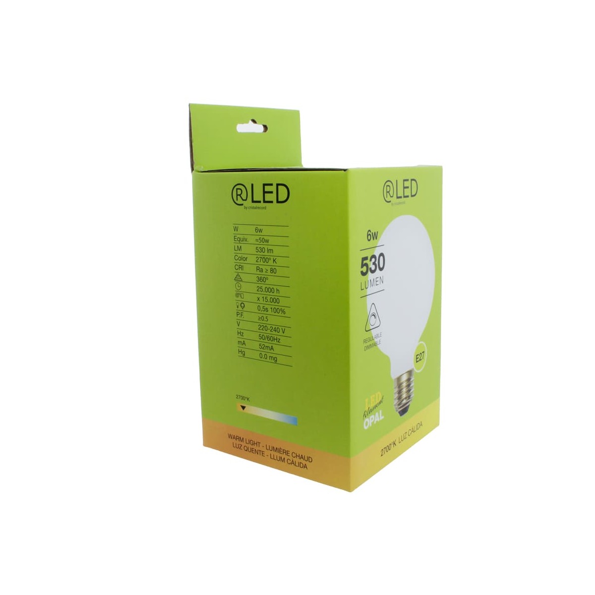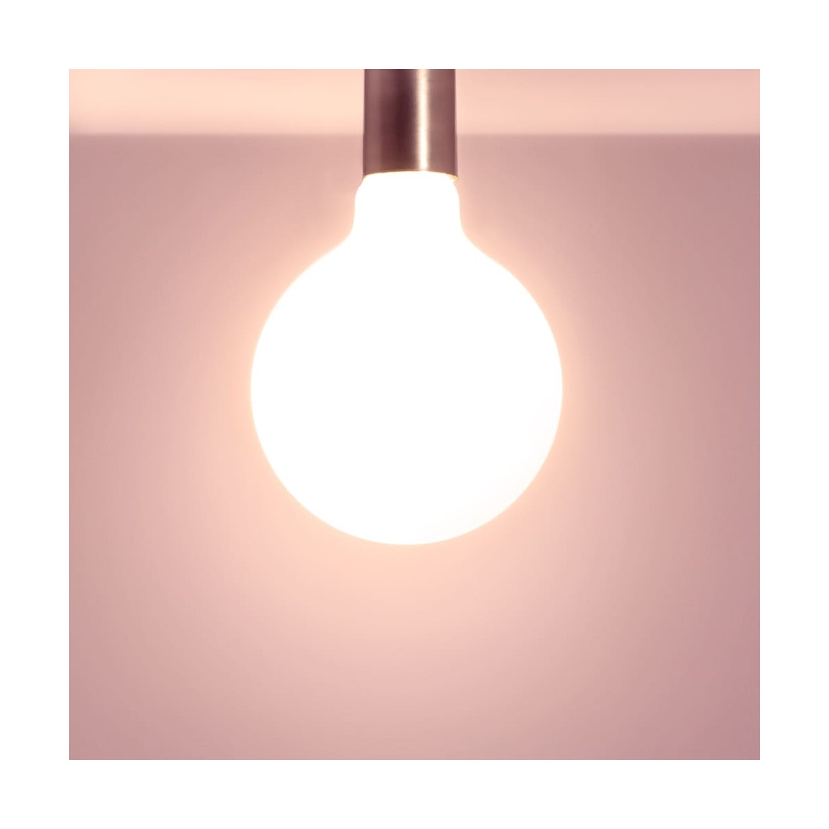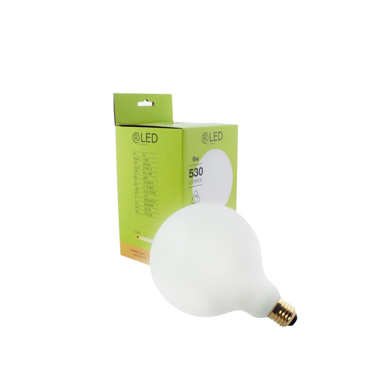 ampoule Globe décoratif G125 avec finition blanc mat. Filament de Led 6W, 530 lumens dimmable. Lumière chaude de 2700K