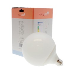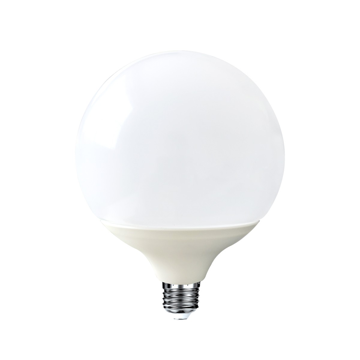 Ampoule globe LED 120mm en PVC avec un diffuseur blanc mat. L'ampoule à filetage E27 a une puissance de 18W.