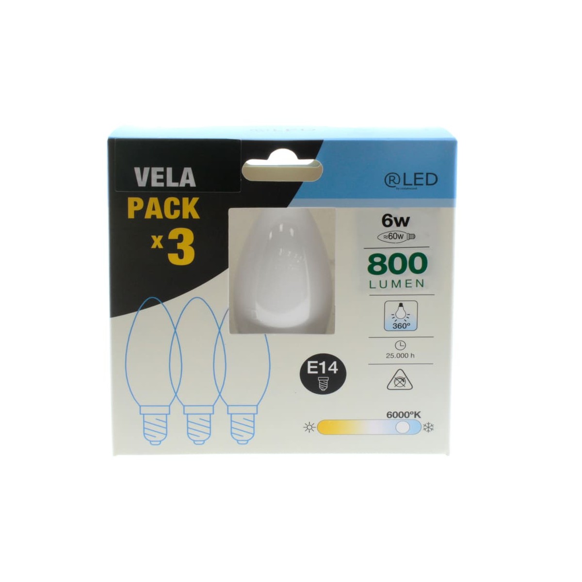 Lot de 3 ampoules LED C37 Milky E14 6W 6000K