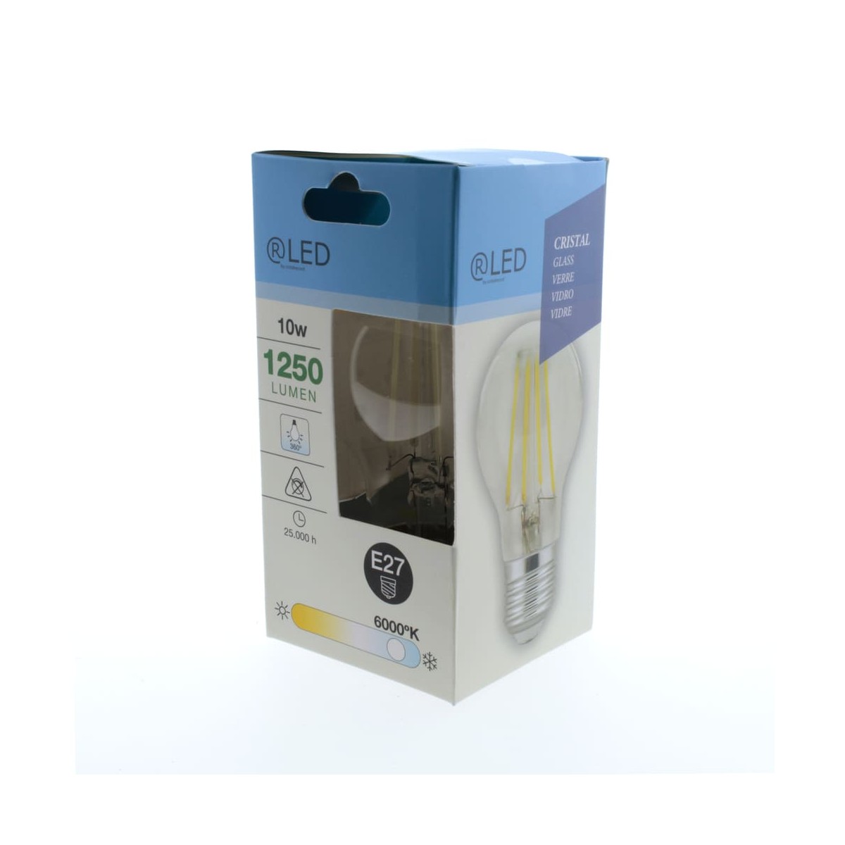 Ampoule LED A60, décorative avec finition blanche brillante. Complètement opaque, aucun filament de LED visible. Ampoule LED de 10W de puissance et de très haute efficacité lumineuse à 1250lm, avec lumière blanche froide.