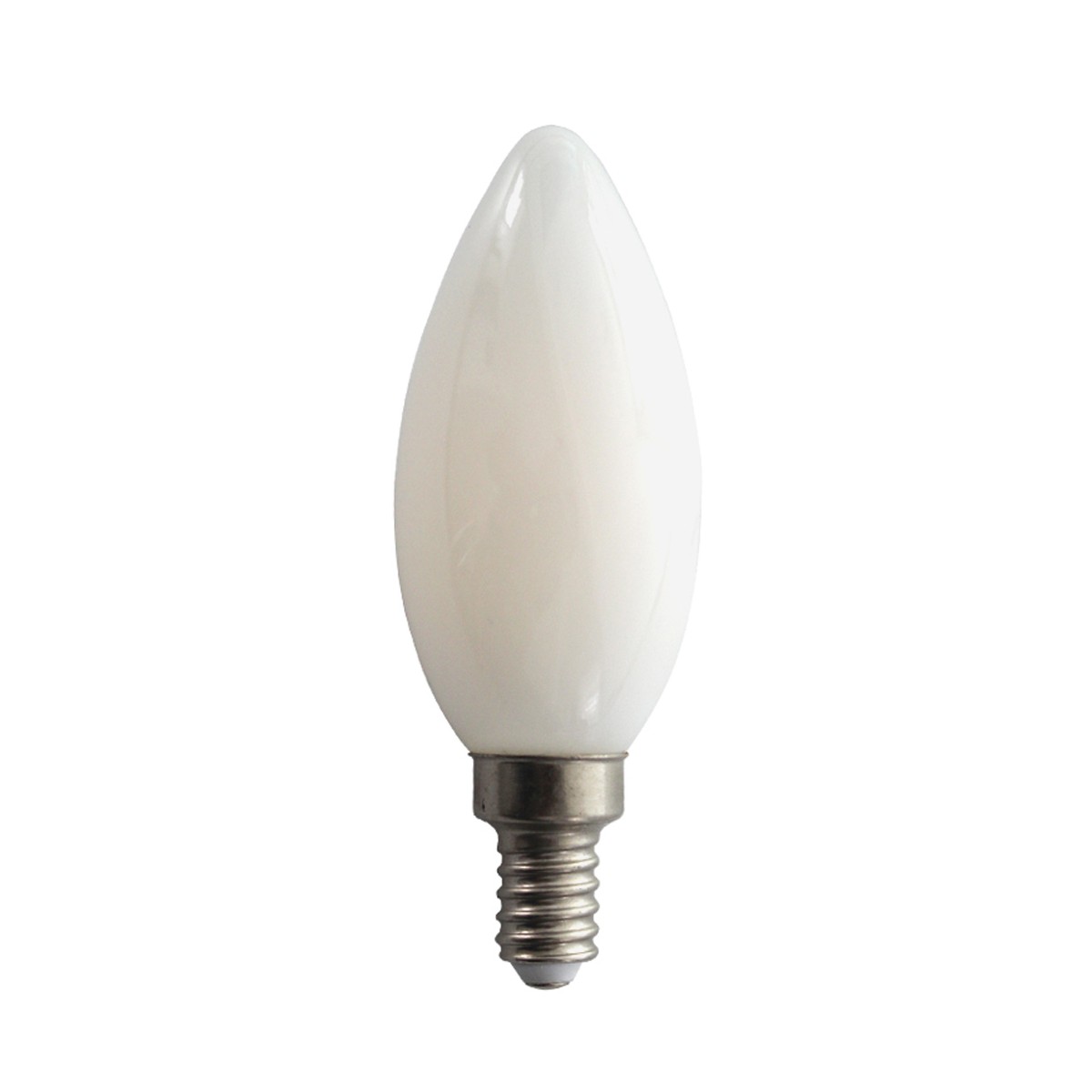 Ampoule C37 avec diffuseur en verre blanc brillant.