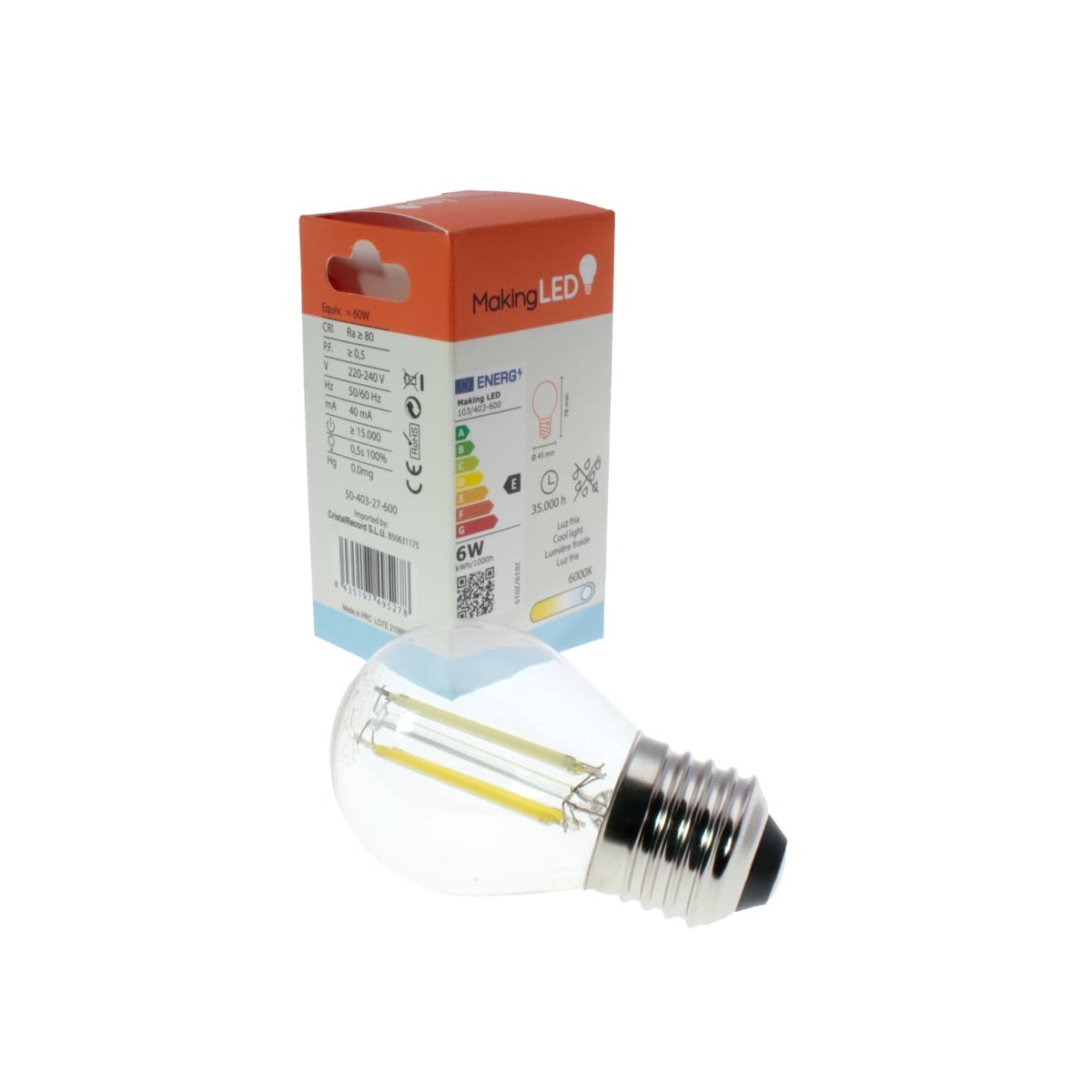 Ampoule LED Transparente G45 E27 6W 660Lm Dimmable 6000K