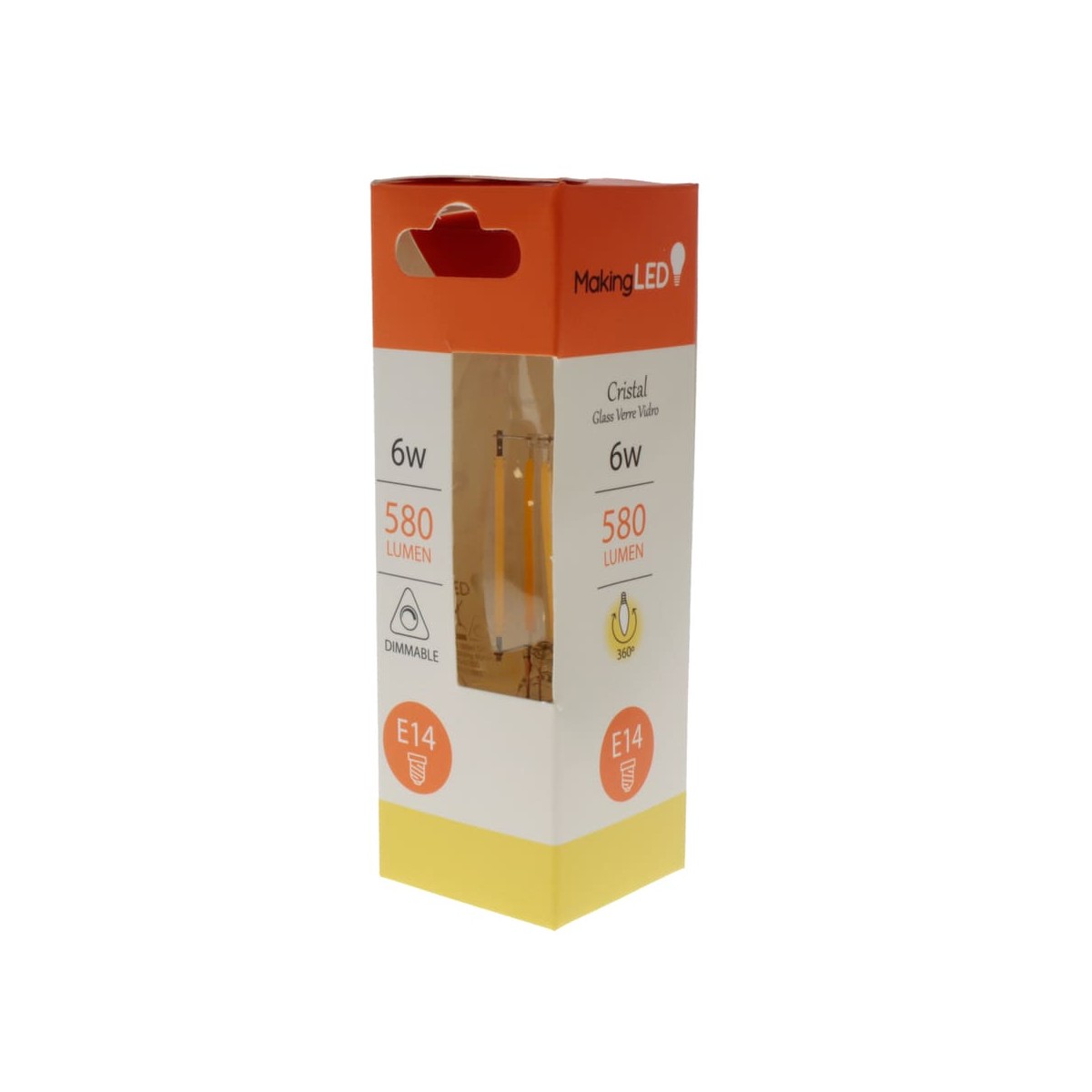 Ampoule LED Transparente C35 E14 6W 580Lm Dimmable 3000K