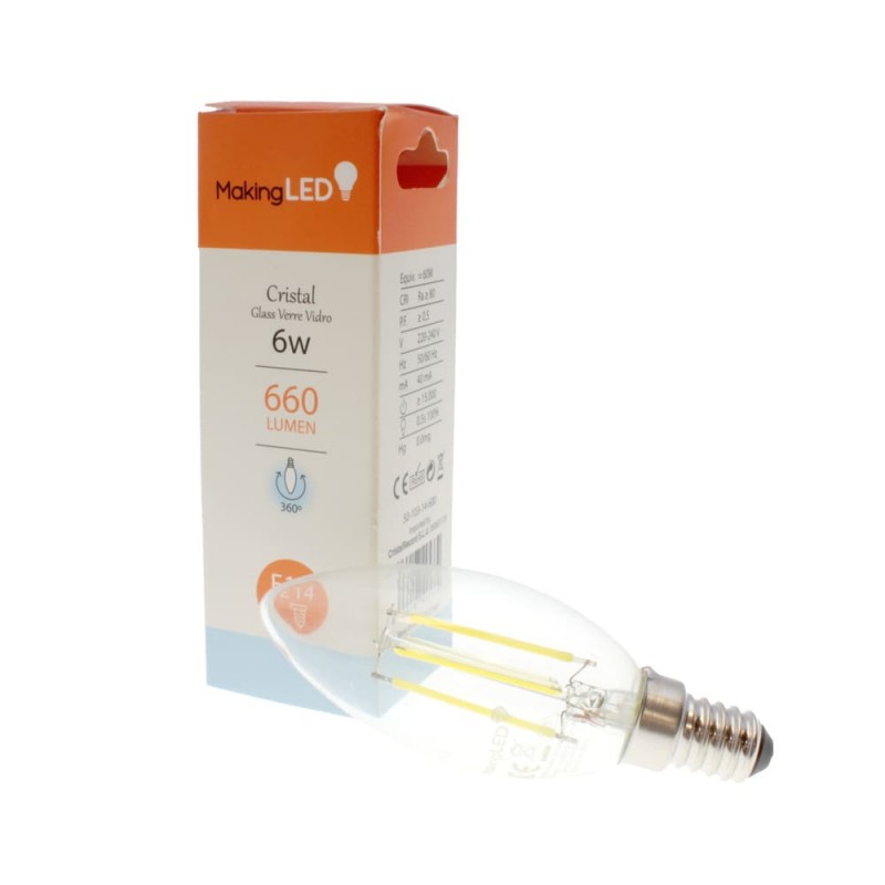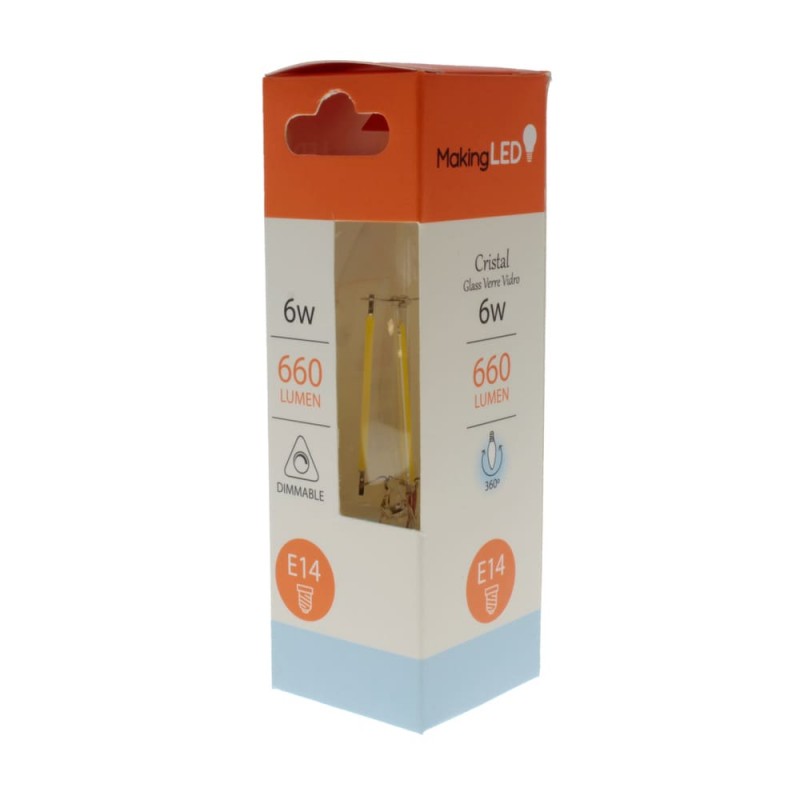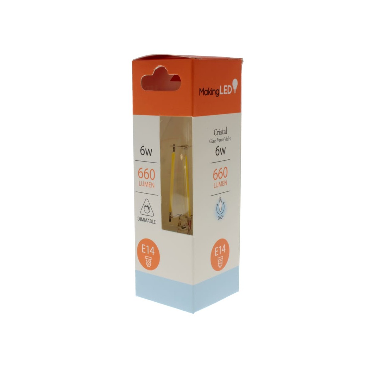 Ampoule LED Transparente C35 E14 6W 660Lm Dimmable 6000K