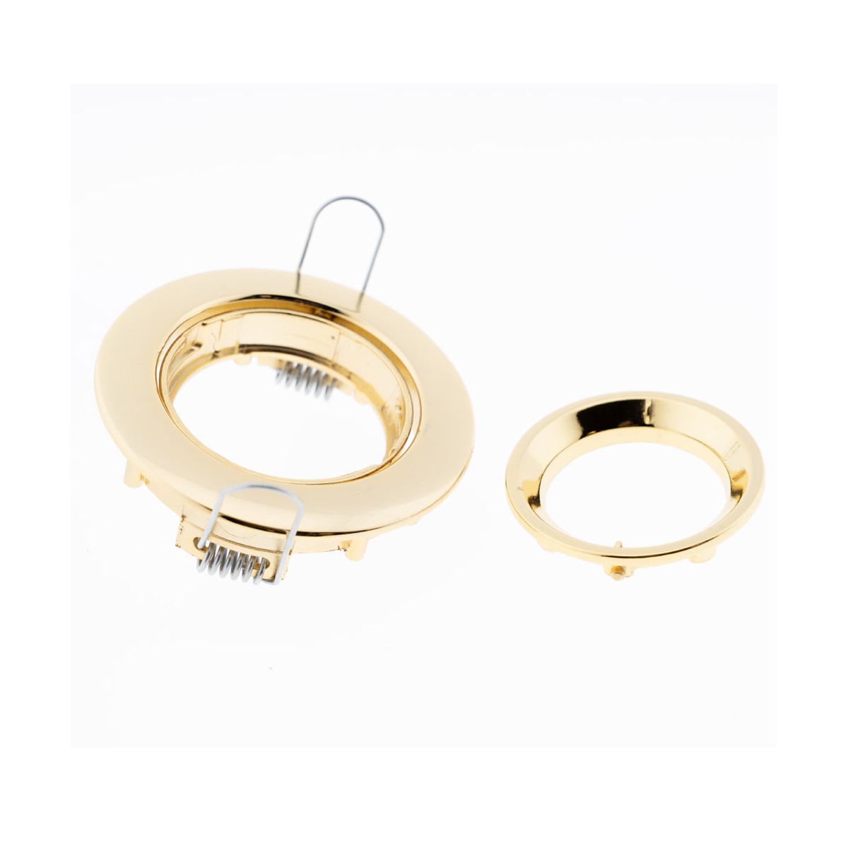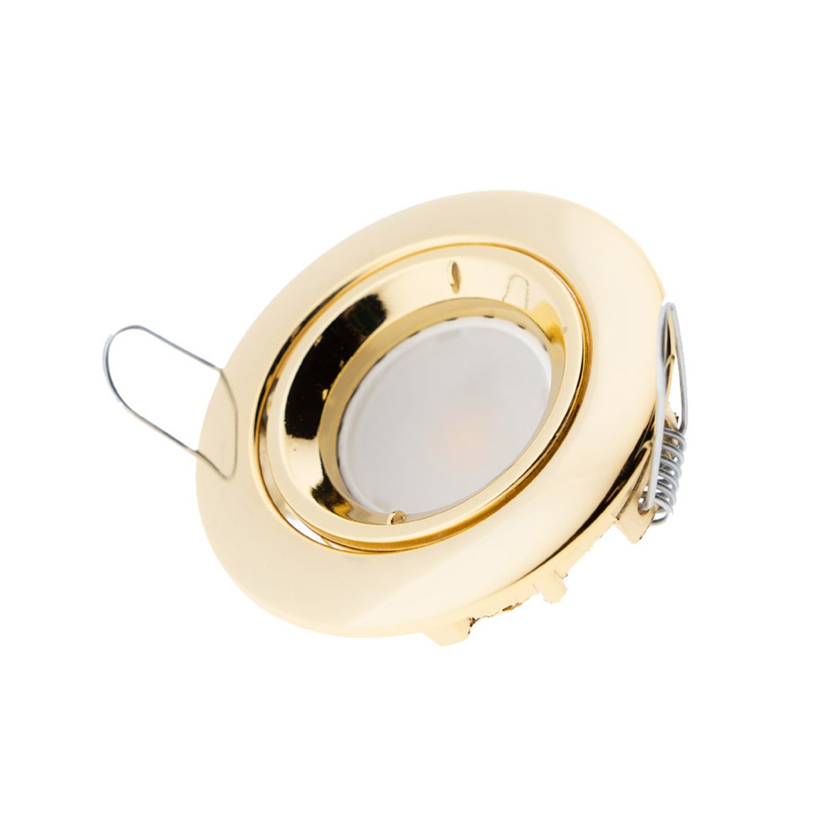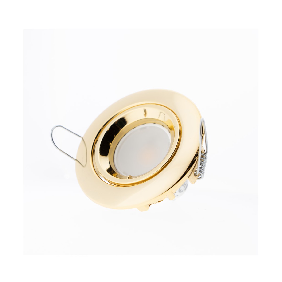 Luminaire encastré rond de couleur or pour installation au plafond. La gamme d'encastrement or est un TOP SELLER en raison de sa demande pour la réalisation de projets contractuels. Avec une élégante finition dorée, le luminaire encastré offre une forme circulaire compacte, est facile à installer et s'intègre parfaitement au plafond. Une fois l'ampoule en place, le point lumineux peut être réglé avec un angle d'inclinaison de 30° pour orienter légèrement l'éclairage.