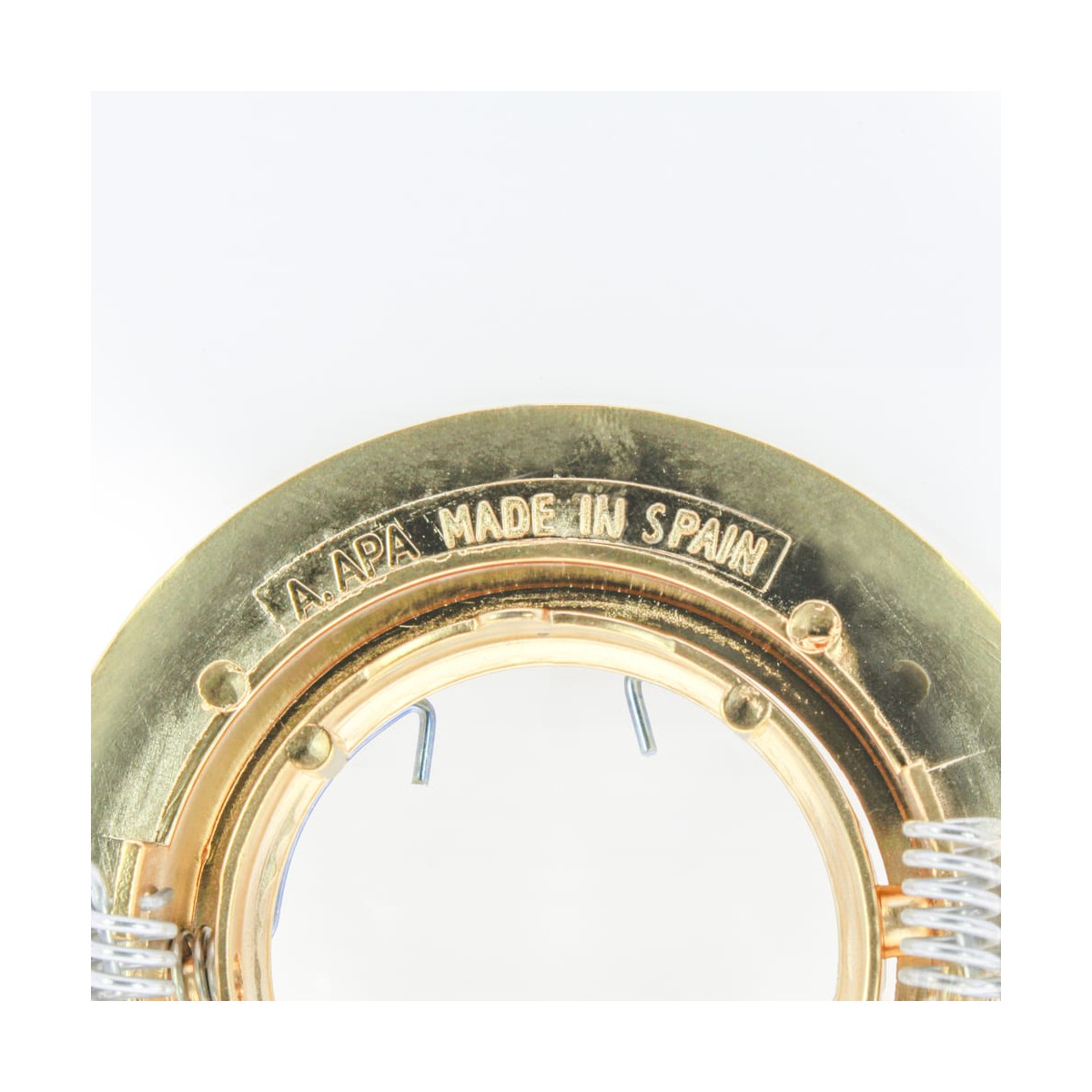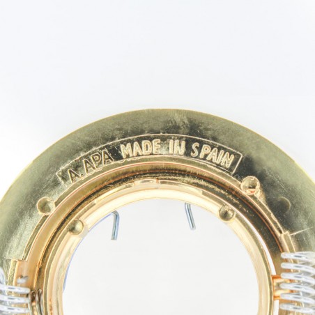 Spot encastré inclinable en or mat qui s'intègre facilement au plafond. Ce luminaire plafonnier encastré est l'un des plus populaires de sa gamme pour les projets d'éclairage intérieur. L'élégante finition or mat de sa structure en zamak apporte une touche différente lorsqu'il s'agit d'illuminer une pièce. D'un design simple, le luminaire encastré a la particularité d'être inclinable. Ainsi, une fois installé au plafond, vous pouvez modifier la position du point lumineux avec un angle de 30º pour orienter l'éclairage. De haute qualité et durable, fabriqué en Espagne en zamak moulé par injection avec une finition or mat.