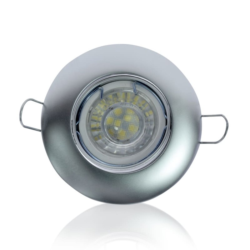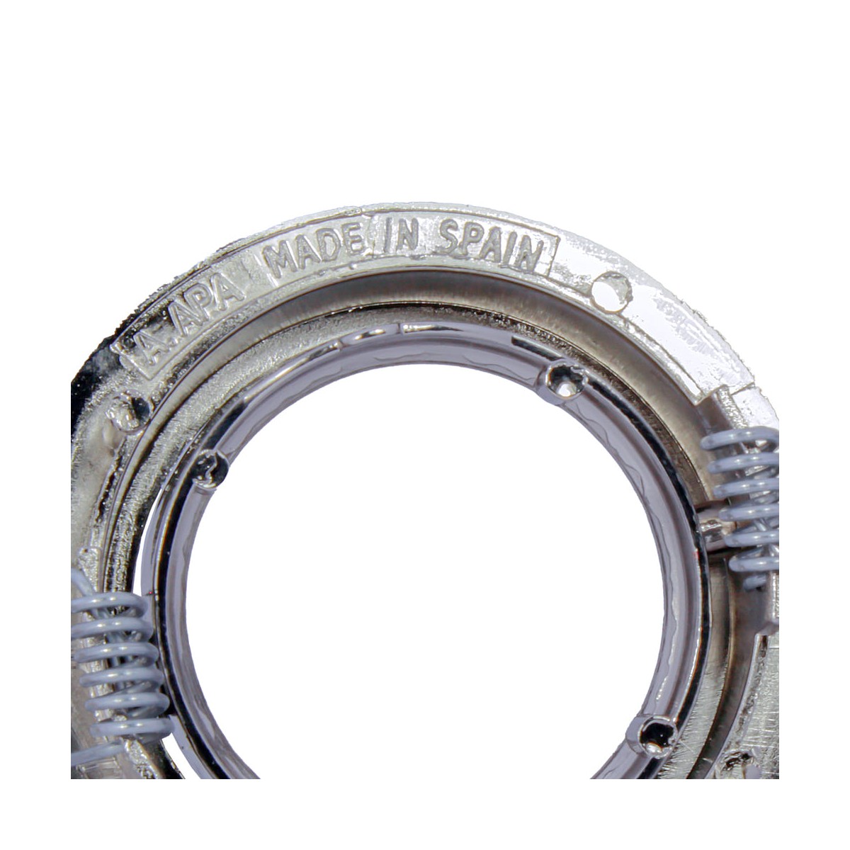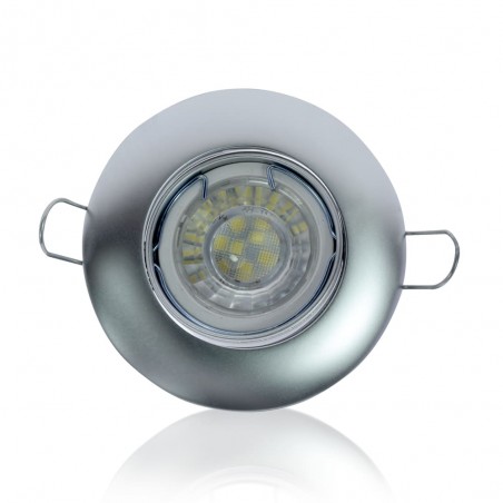 Spot encastré basculant rond chromé mat. Les spots encastrés avec un point lumineux inclinable sont très pratiques pour éclairer des zones spécifiques de la maison, comme les couloirs, les entrées et les salons. Il s'intègre facilement au plafond grâce à sa forme circulaire et à sa taille compacte. L'ampoule peut être facilement remplacée par l'avant sans avoir à retirer le downlight du plafond. Ce luminaire encastré est fabriqué en Espagne avec une injection de zamak pour une durabilité maximale. Consultez toutes les finitions disponibles des encastrés basculants ronds pour l'éclairage intérieur. Possibilité d'achat avec douille GU10 ou G5,3.