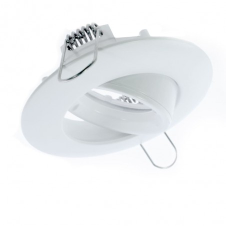 Luminaire encastré circulaire inclinable pour les projets d'éclairage. Les lampes encastrées blanches sont l'un des modèles les plus populaires pour les projets grâce à leur intégration facile dans le plafond. Il offre un design circulaire compact, simple et très pratique pour une installation dans tous types de pièces telles que chambres, salons, couloirs ou passages. Comme il est inclinable jusqu'à 30º, vous pouvez facilement diriger l'éclairage légèrement d'un côté ou de l'autre. Cette gamme de lumières encastrées est fabriquée à 100% en Espagne par injection de zamak pour offrir la plus haute qualité. Disponible en plusieurs finitions.