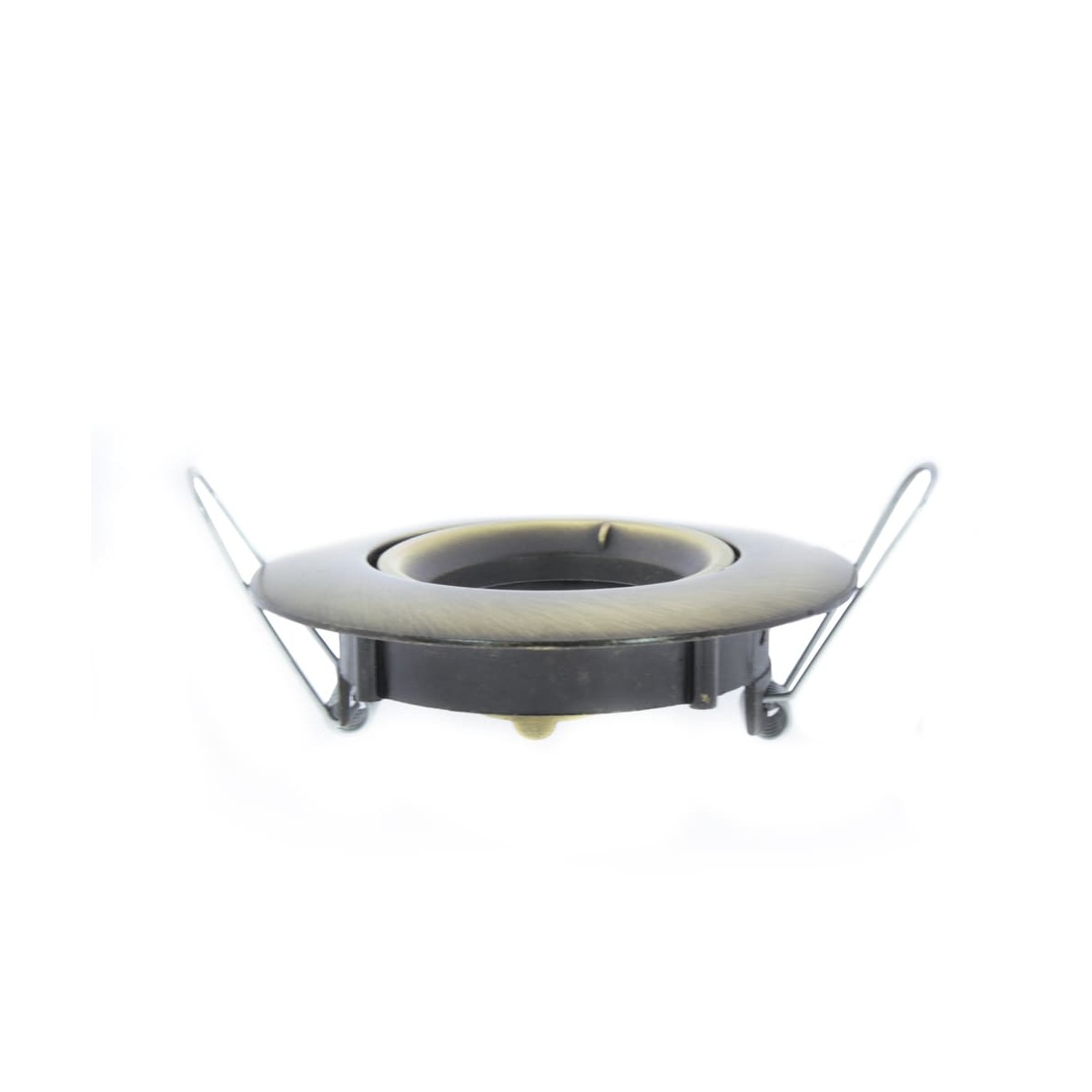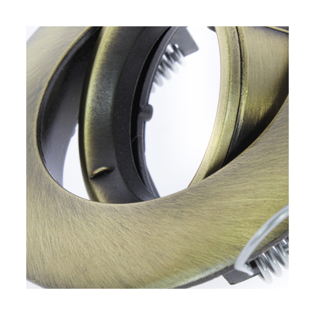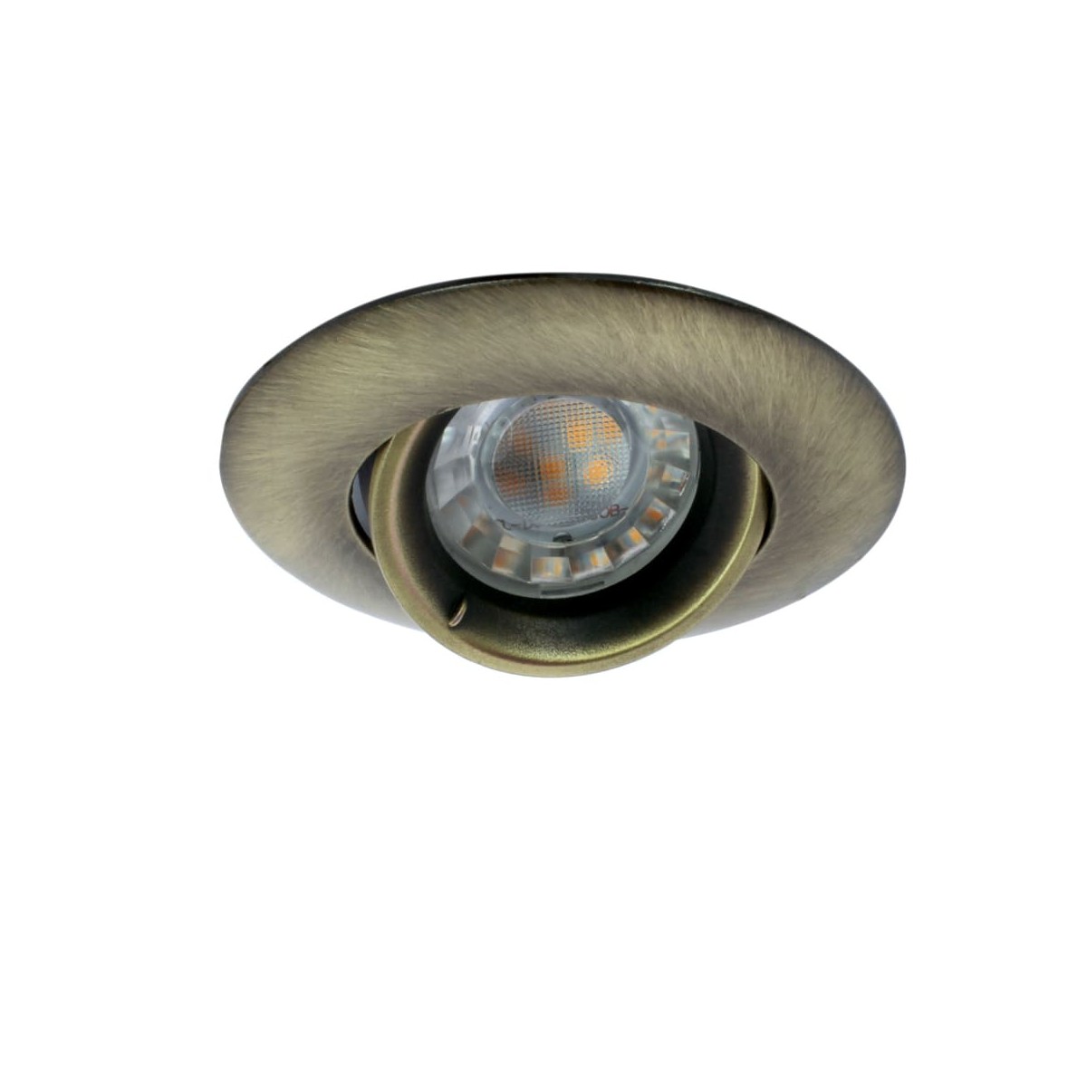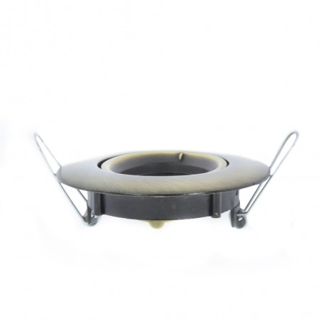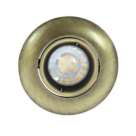 Lampe encastrée ronde inclinable en finition or antique. Le luminaire encastré est conçu avec un angle d'inclinaison de 30°, permettant de diriger la lumière directement vers le bas ou sur le côté. Une fois installé au plafond, il n'est pas nécessaire de retirer le downlight pour remplacer l'ampoule, car elle peut être facilement retirée par l'avant. Design circulaire compact avec une finition or antique pour les projets d'éclairage dans les maisons, les hôtels et les entreprises. Plafonnier encastré avec une garantie de 10 ans et injection de zamak avec une fabrication 100% espagnole. Disponible en plusieurs finitions, vous pouvez acheter le luminaire encastré individuellement ou combiné avec un support de lampe GU10 ou G3.5.