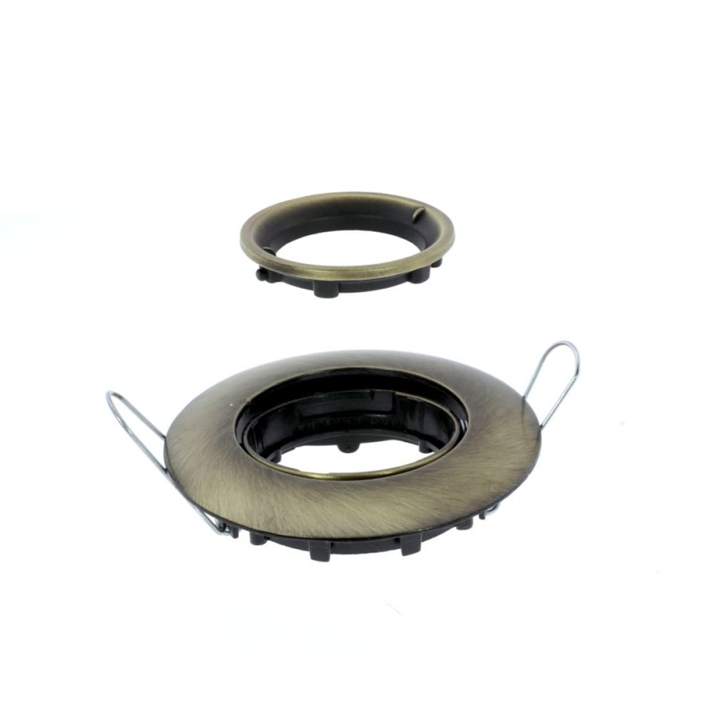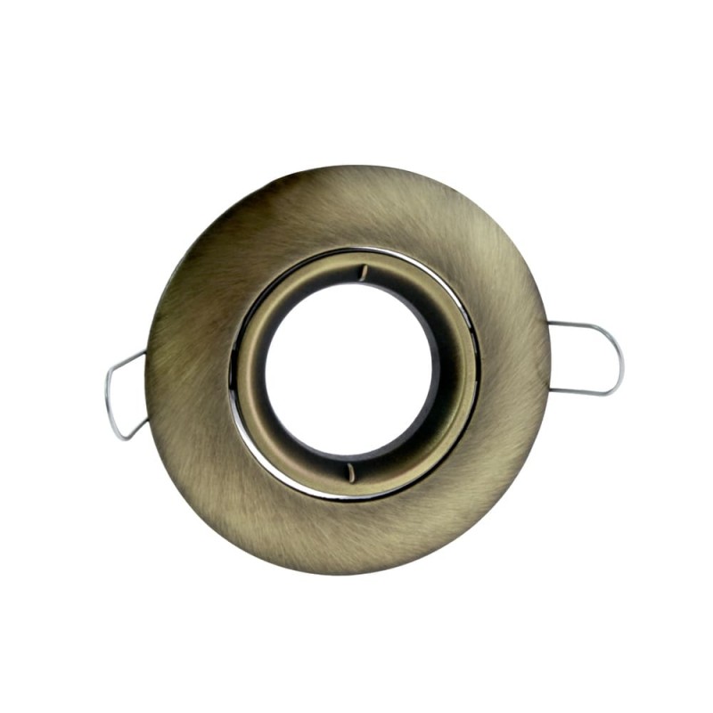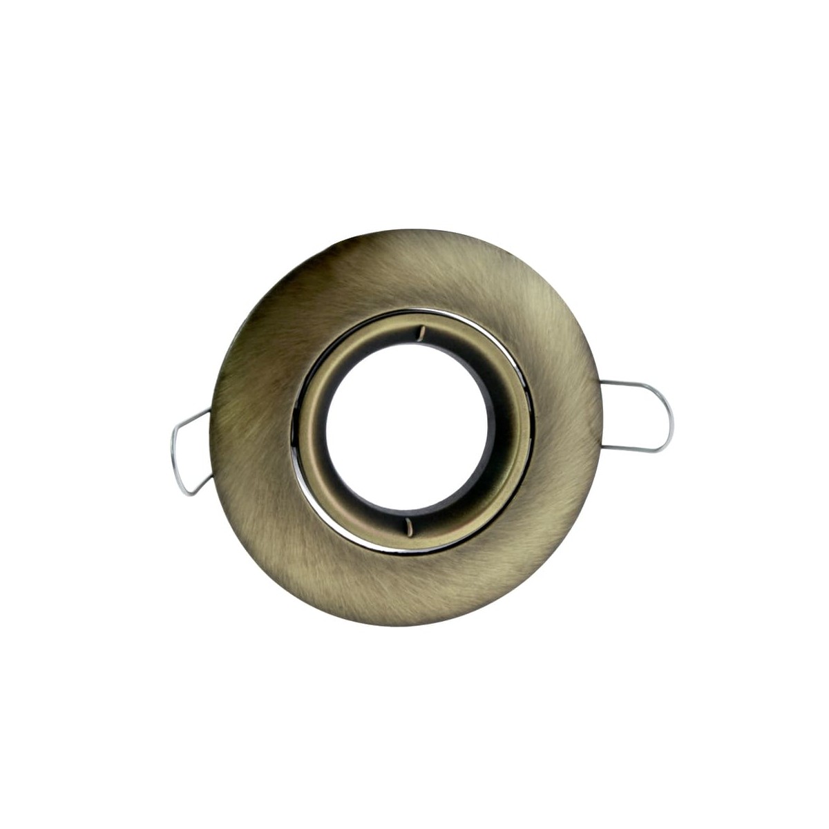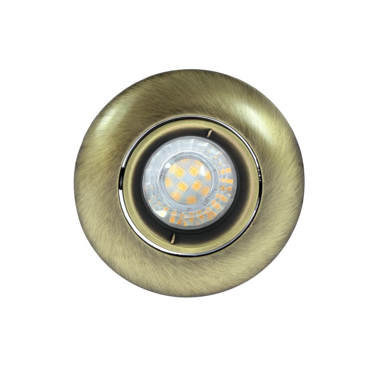 Lampe encastrée ronde inclinable en finition or antique. Le luminaire encastré est conçu avec un angle d'inclinaison de 30°, permettant de diriger la lumière directement vers le bas ou sur le côté. Une fois installé au plafond, il n'est pas nécessaire de retirer le downlight pour remplacer l'ampoule, car elle peut être facilement retirée par l'avant. Design circulaire compact avec une finition or antique pour les projets d'éclairage dans les maisons, les hôtels et les entreprises. Plafonnier encastré avec une garantie de 10 ans et injection de zamak avec une fabrication 100% espagnole. Disponible en plusieurs finitions, vous pouvez acheter le luminaire encastré individuellement ou combiné avec un support de lampe GU10 ou G3.5.