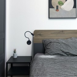 Applique flexible pour la chambre à coucher. Applique conçue pour être utilisée comme lampe d'appoint ou de lecture à côté de la tête de lit. Structure flexible, point lumineux LED focalisé et interrupteur ON/OFF sur la base. Parfaite pour les projets contractuels dans les chambres d'hôtel en en plaçant une de chaque côté de la tête de lit. Fabriquée en aluminium noir avec un corps flexible.