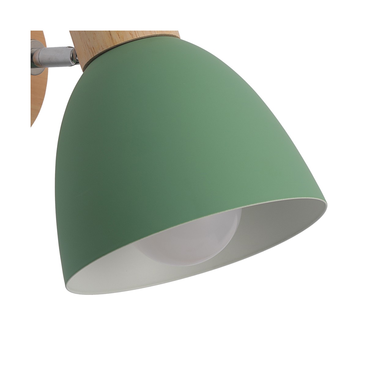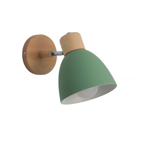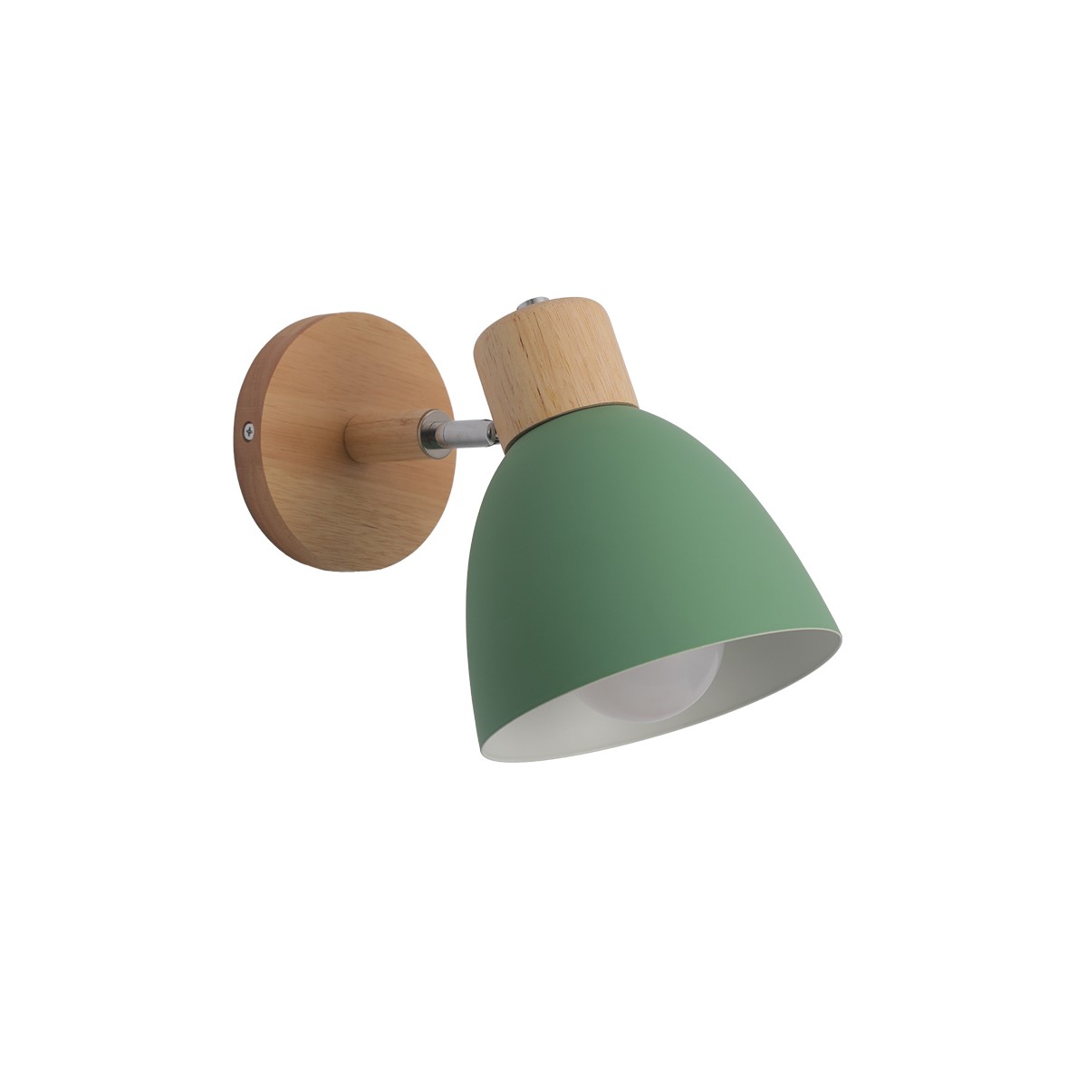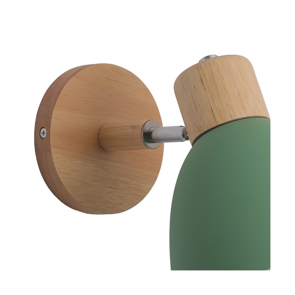 Applique réglable Nami. Lampe murale de style enfantin avec abat-jour en métal vert et base en bois. Vous pouvez ajuster la position de l'abat-jour de haut en bas (180º) pour diriger l'éclairage. Lampe murale très pratique à placer à côté de la tête de lit pour éclairer.