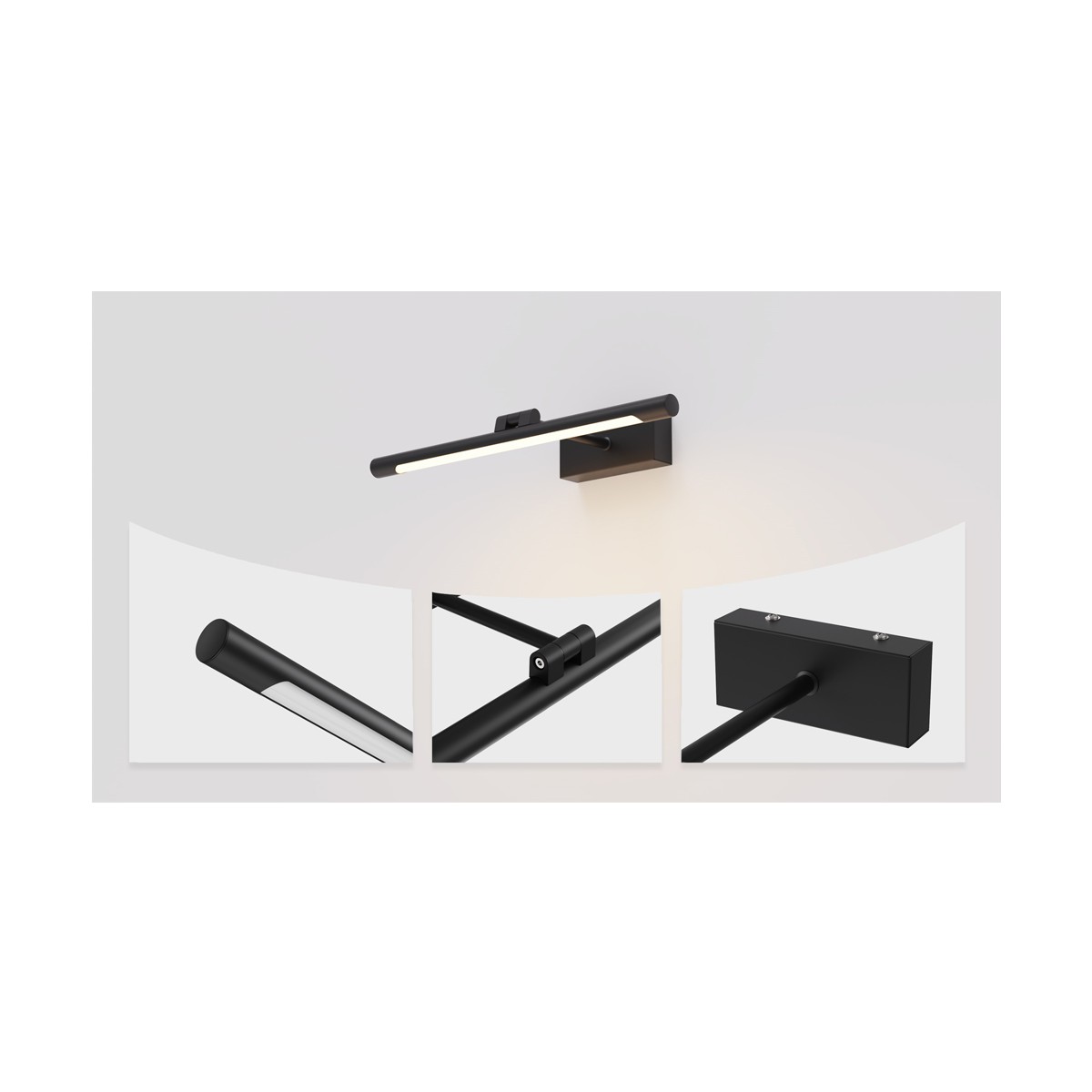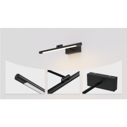 Applique murale à placer au-dessus du miroir de la salle de bains. Applique LED à lumière blanche neutre pour l'éclairage quotidien devant le miroir. Elle dispose d'un éclairage LED intégré avec une température de couleur blanc neutre (4000K). Fabriquée en aluminium noir avec diffuseurs en polycarbonate. IP44.