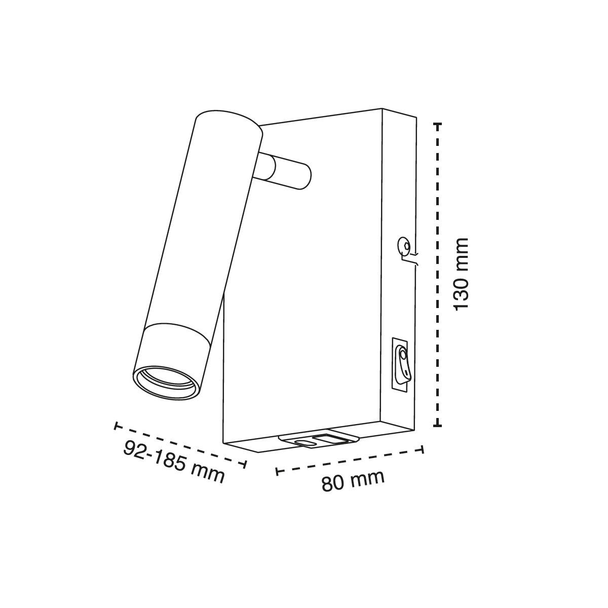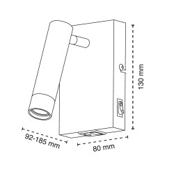 Applique mince avec lecteur réglable. Applique pratique à installer sur le mur à côté de la tête de lit ou sur la table de chevet. Elle dispose d'un spot tubulaire réglable pour une utilisation en tant que lampe d'appoint ou de lecture. L'applique dispose d'un interrupteur ON/OFF sur un côté et de deux ports USB (A et C).