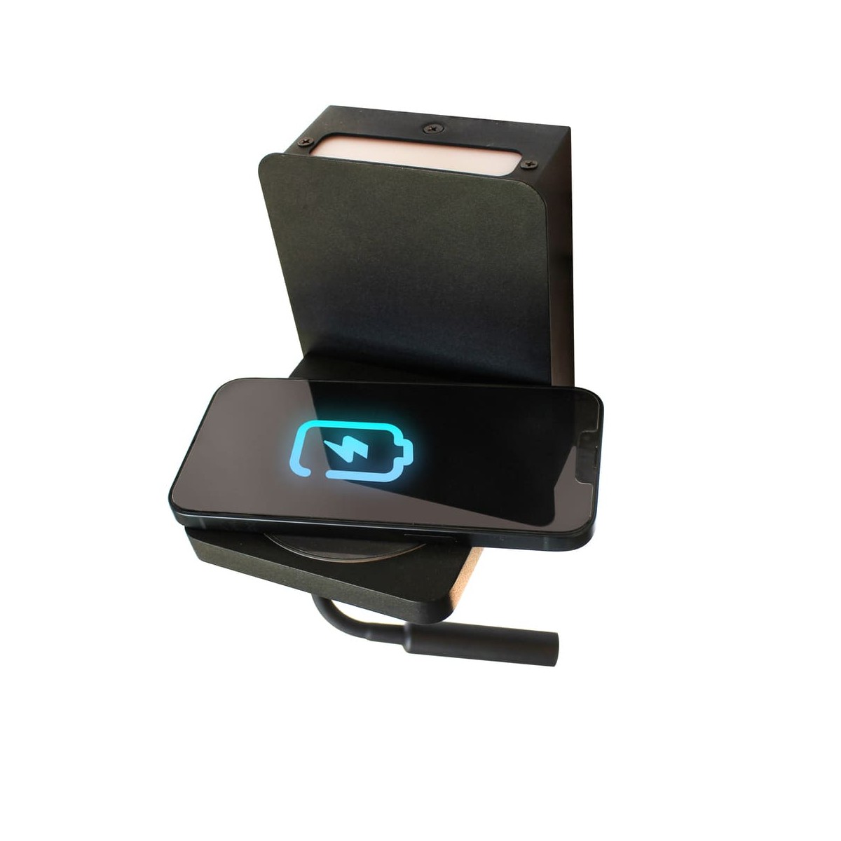 Applique LED Rob II 10.5cm Noire 5W+3W 532Lm 3000K USB et Chargeur Sans Fil
