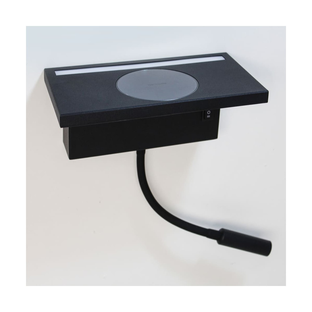 Applique LED Rob II 22cm Noire 5W+3W 530Lm 3000K USB et Chargeur Sans Fil