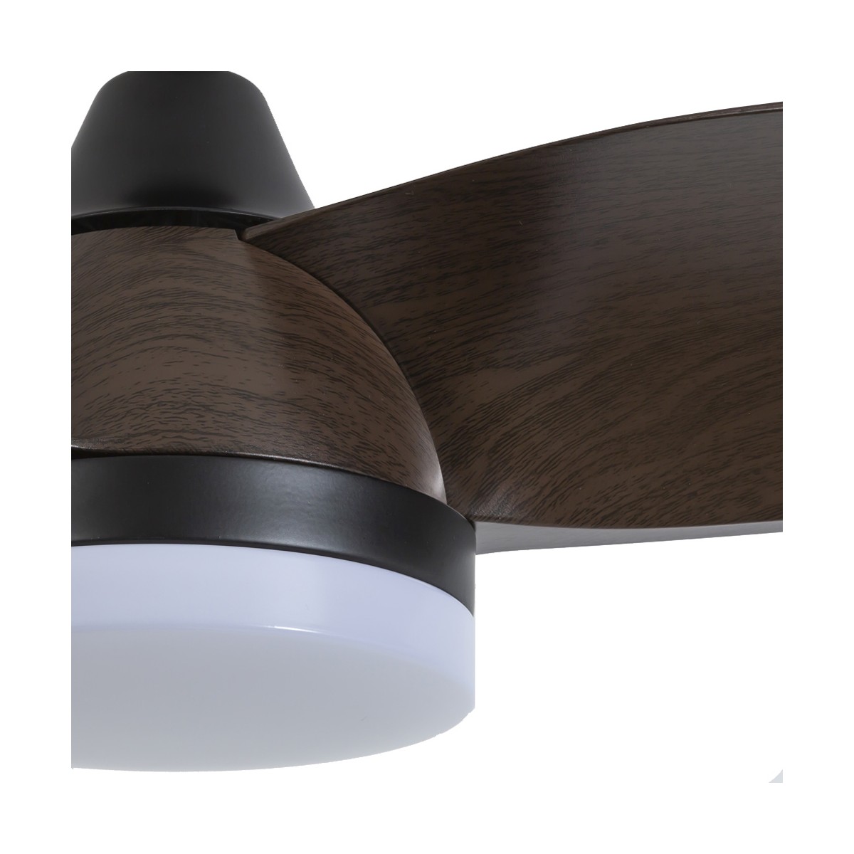 Ventilateur de plafond Byan pour les chambres à coucher et les salles de séjour. Ventilateur silencieux très pratique comme source de lumière et de ventilation dans les chambres à coucher et les pièces de taille moyenne. Moteur à courant continu à six vitesses de rotation, fonction d'inversion et minuterie pour programmer son arrêt. Il dispose d'un éclairage LED intégré réglable en température de couleur et en intensité lumineuse. Couleur noire avec des lames en ABS effet bois foncé.