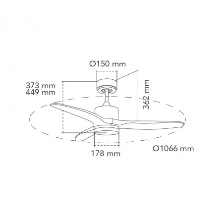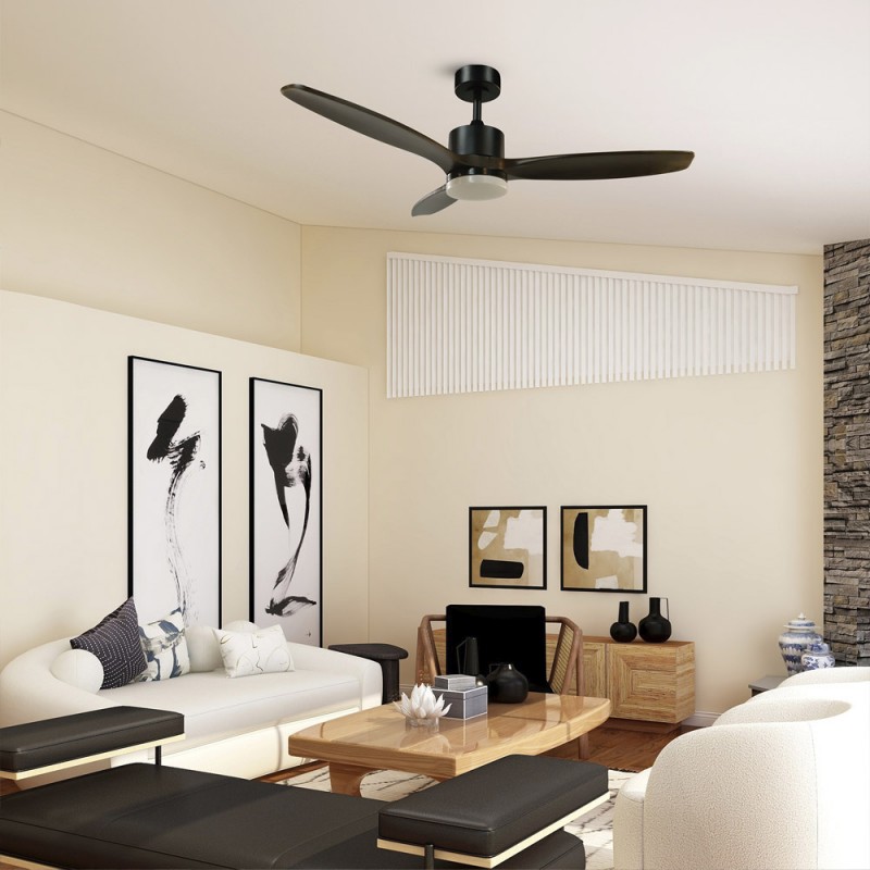 Ventilateur de plafond avec moteur à courant continu à 6 vitesses et éclairage LED intégré de 22W avec trois tonalités de lumière et mémoire de mise en marche. Ce ventilateur dispose des fonctions de marche arrière, de brise et de ventilation. Il comprend deux tiges de 13 cm et 20 cm pour ajuster la hauteur du ventilateur selon vos besoins. Grâce à la commande incluse dans la boîte, le ventilateur peut être programmé pour fonctionner pendant (30' - 2H).