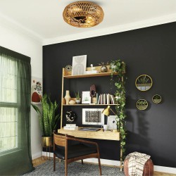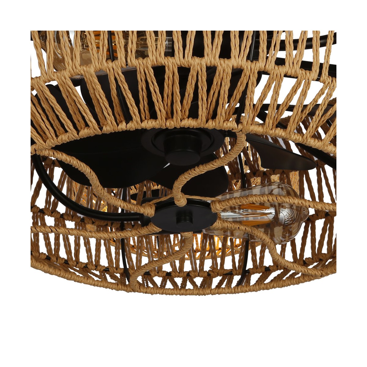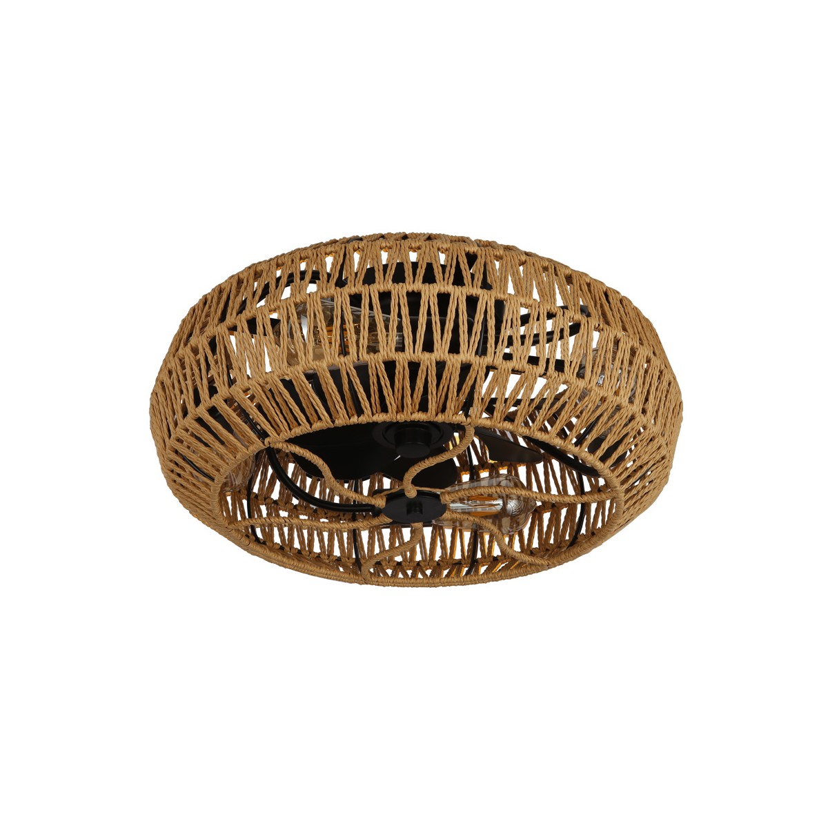 Ventilateur de plafond boho chic pour les salons et les chambres à coucher. Ventilateur de plafond avec pales intégrées à l'intérieur d'un abat-jour en fibres naturelles. Son design s'intègre parfaitement dans un salon ou une chambre boho chic. Il est équipé d'un moteur à courant continu silencieux à six vitesses de rotation et est contrôlé par une télécommande (incluse). Peut accueillir quatre ampoules LED E27. Facile à fixer directement au plafond.