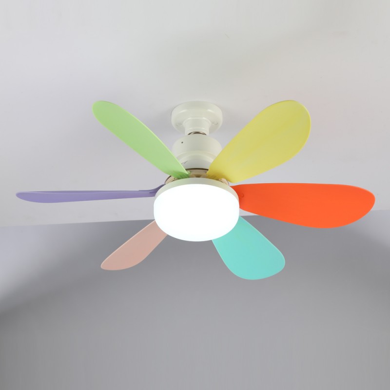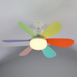 Ventilateur de plafond pour enfants Nikiya avec éclairage LED. Ventilateur de plafond avec un design conçu pour être placé dans les chambres d'enfants. Il présente un design en forme d'ampoule E27 (socle d'installation non inclus*) avec six pales en ABS de différentes couleurs. Conçu pour les chambres d'enfants. Moteur à courant alternatif à trois vitesses. Télécommande incluse.