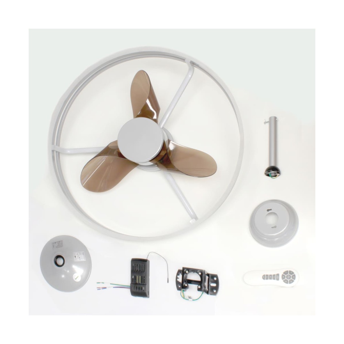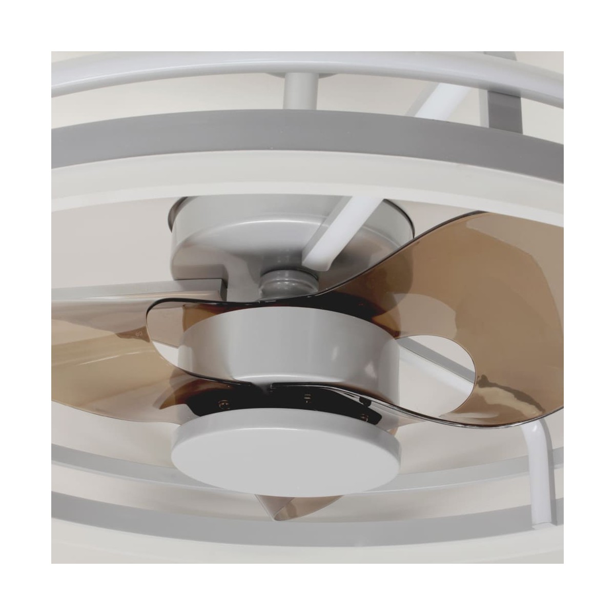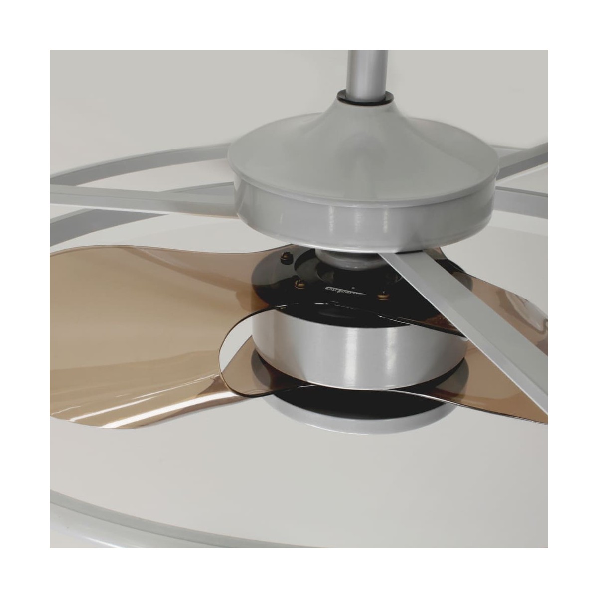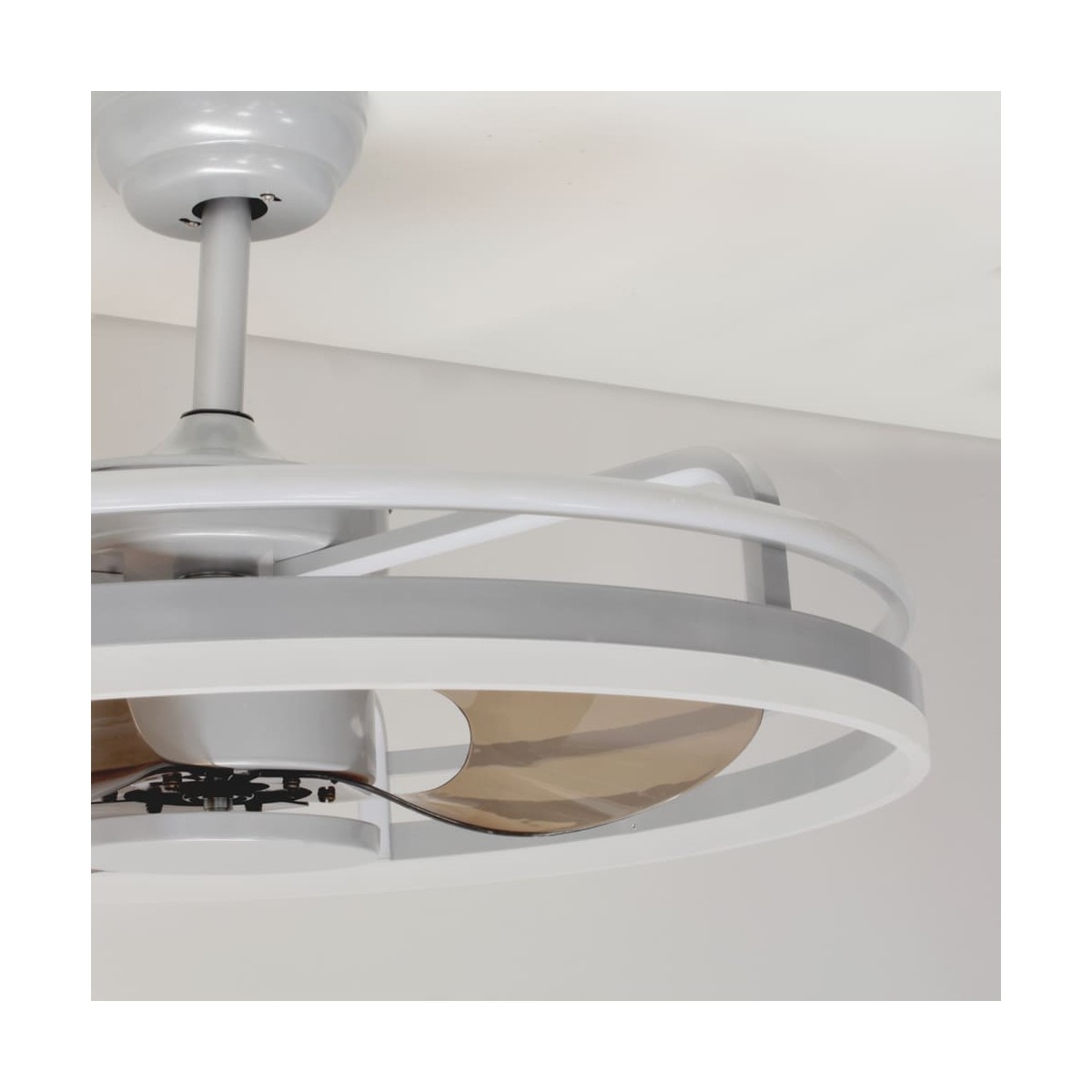 Agra est un ventilateur de plafond avec un moteur DC à 6 vitesses. Il est doté de trois pales transparentes en ABS, d'un corps en aluminium et d'une bande LED intégrée protégée par un diffuseur en silicone. Ventilateur avec éclairage LED intégré de 42W avec trois températures et mémoire de mise en marche.