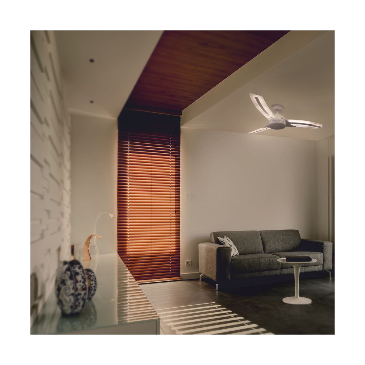Lighter est un ventilateur de plafond innovant, développé et patenté par l'équipe technique de CristalRecord. Une distribution différente de la lumière a été développée en étendant la source de lumière du ventilateur aux pales translucides, en incorporant des bandes de LED. Le système d'éclairage permet d'éclairer la partie centrale du ventilateur avec une puissance de 24W, les pales de manière indépendante obtenant une puissance de 18W créant ainsi une atmosphère cosy ou d'éclairer les deux sources lumineuses simultanément jusqu'à 24W.