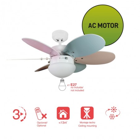 Ventilateur de plafond AC Orion 1xE27 Pastel Multicolor