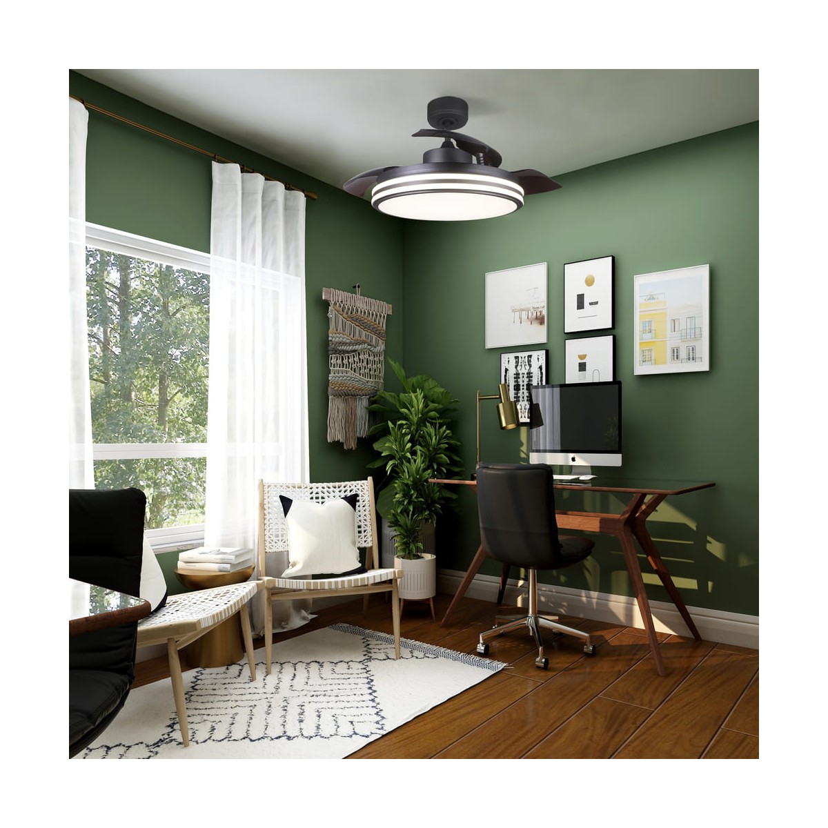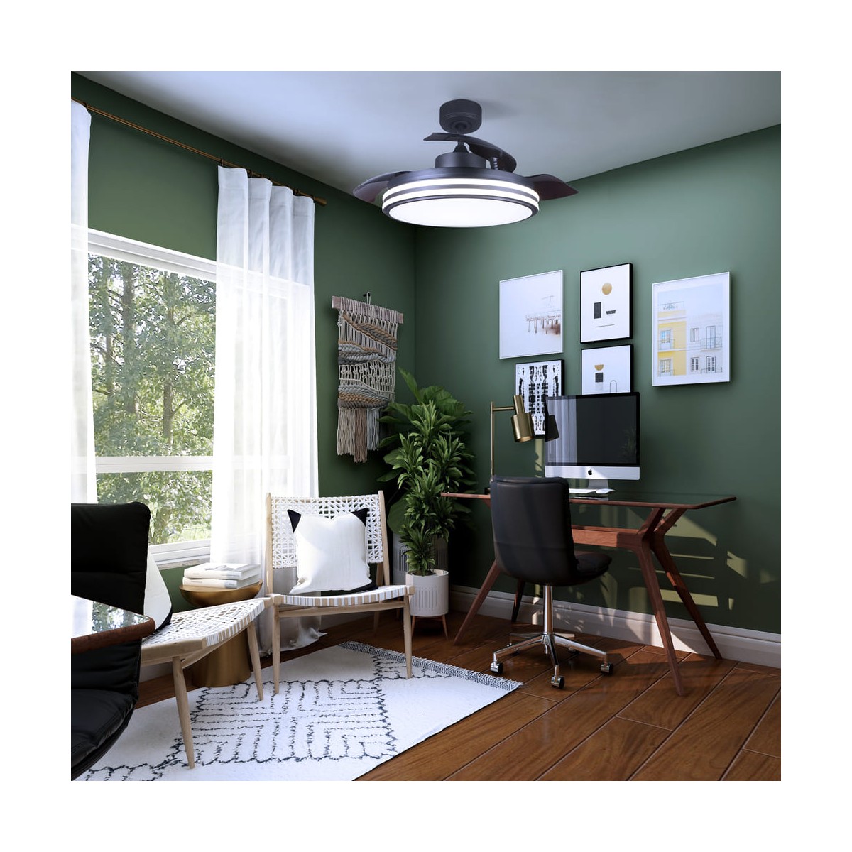 Ventilateur de plafond à pales pliantes noir translucide avec moteur à courant continu. Grâce à son moteur, il permet de réduire la consommation en atteignant jusqu'à 6 vitesses en générant très peu de bruit. Ce ventilateur est doté d'un éclairage LED intégré de 35W avec trois tons de lumière. Il dispose également d'une fonction de brise, qui passe automatiquement d'une vitesse à l'autre, créant ainsi une atmosphère d'air naturel.