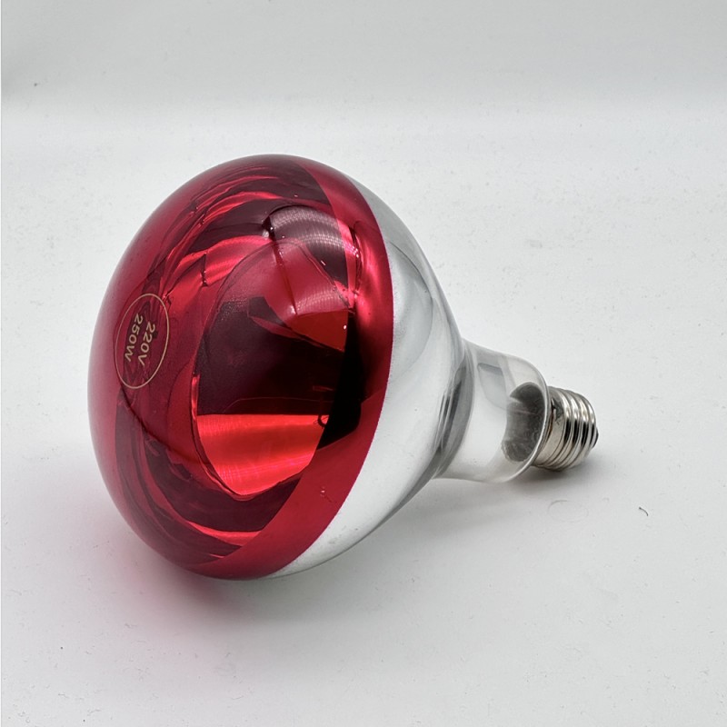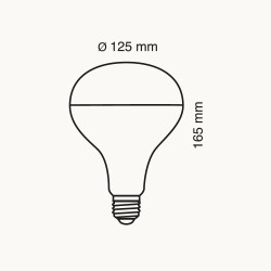 Ampoule infrarouge 250W. Conçue pour fournir une température constante et contrôlée dans des environnements spécifiques. Elle émet un rayonnement thermique dans la gamme des infrarouges. Filetage E27, diamètre de 125 mm et faisceau lumineux de 38º. Ampoule infrarouge pour des utilisations spécifiques telles que la physiothérapie, le séchage de peinture ou le chauffage de reptiles et de petits oiseaux.
