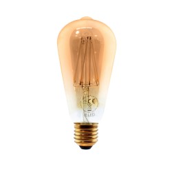 Lot de 3 ampoules à filament vintage. Fil E27 et forme ST64, avec filaments apparents et verre doré. Elles ont une lumière LED de 12W, 1400 lumens et une tonalité chaude (2700K). Elles peuvent faire varier l'intensité de la lumière. Ampoules à filament vintage.