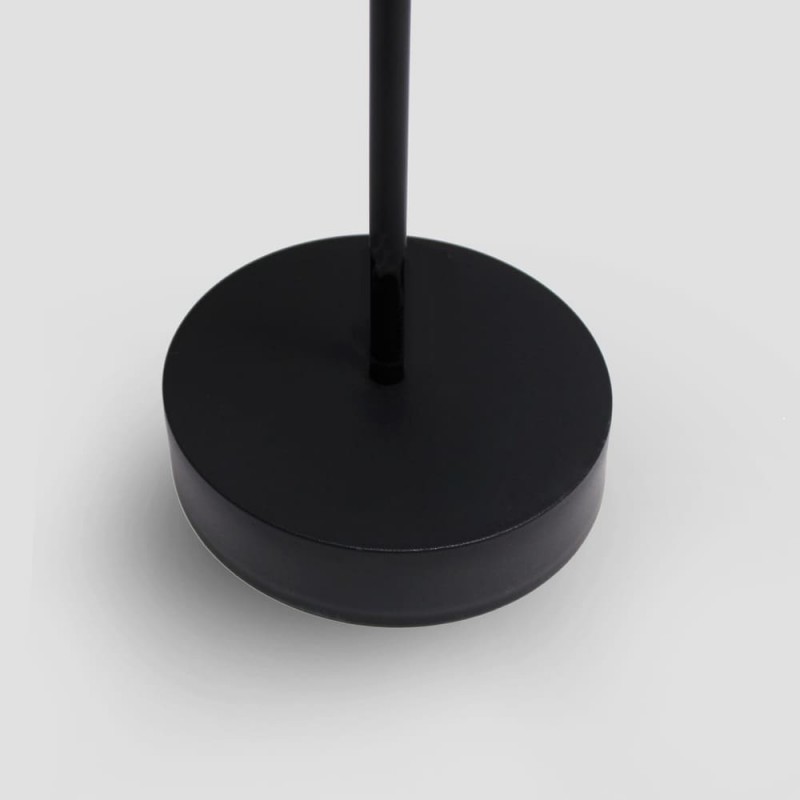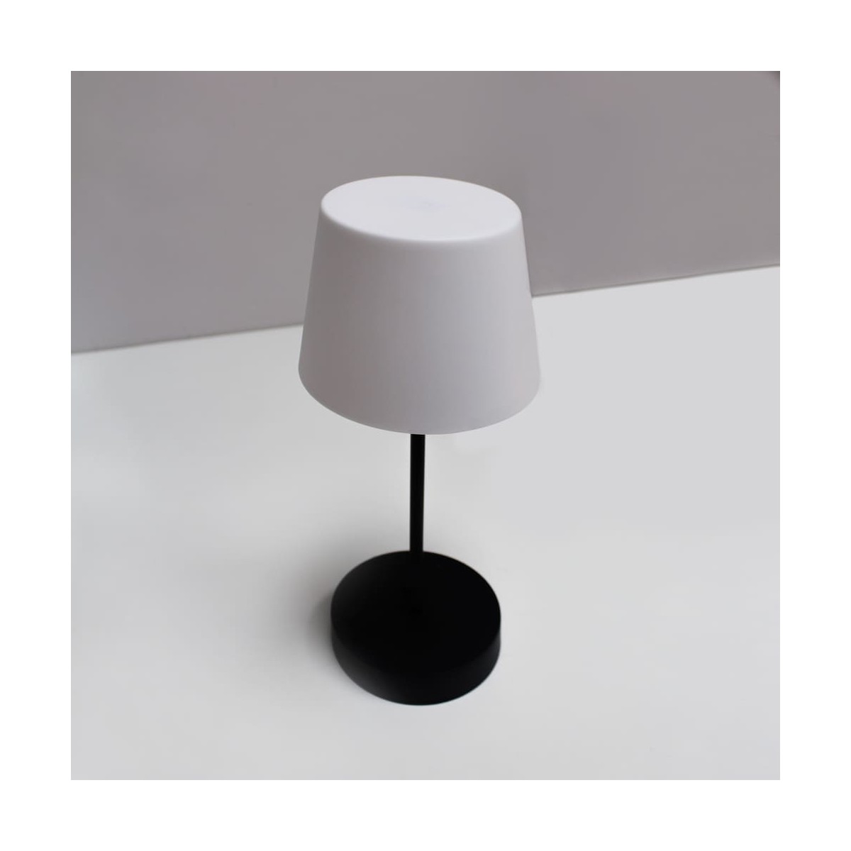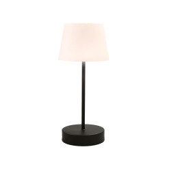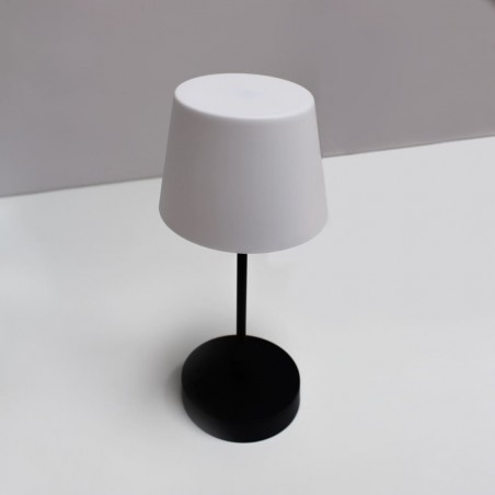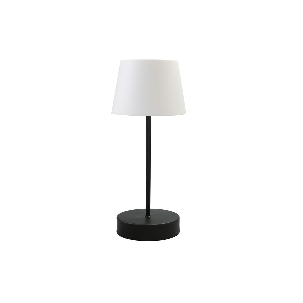 Lampe de table avec batterie rechargeable pour jardins et terrasses. Lampe de table moderne conçue pour fournir un éclairage chaleureux pour les dîners et les réunions en plein air. La lumière s'allume facilement en appuyant sur la partie supérieure de l'abat-jour. En outre, vous pouvez modifier l'intensité lumineuse en fonction du nombre de pressions (100%-50%-10%-OFF). Sur le socle, un port USB permet de recharger la batterie de la lampe (autonomie jusqu'à 10 heures). Lampe noire avec abat-jour opale.