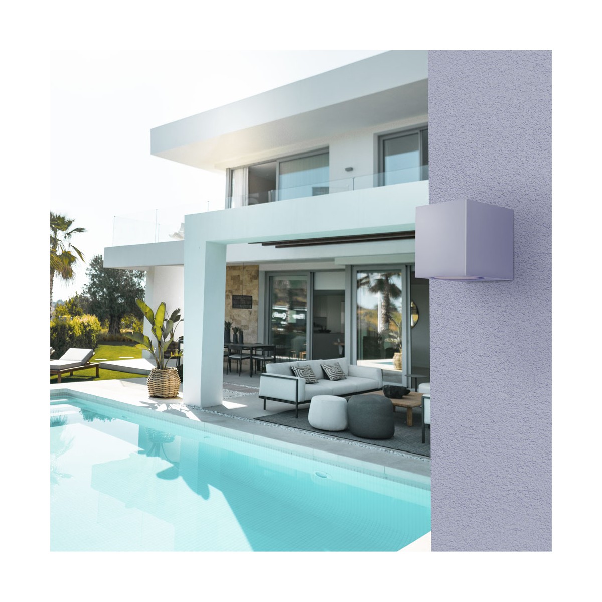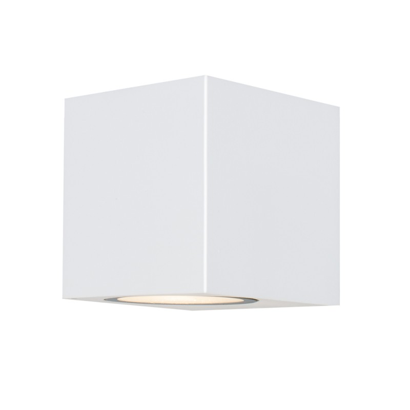 Applique Confo pour l'éclairage extérieur. Applique blanche avec point lumineux à ampoule GU10. Design compact conçu pour une intégration facile dans les murs extérieurs et les façades. La lumière est projetée vers le bas, éclairant le mur. Applique en aluminium blanc avec un indice de protection IP44.