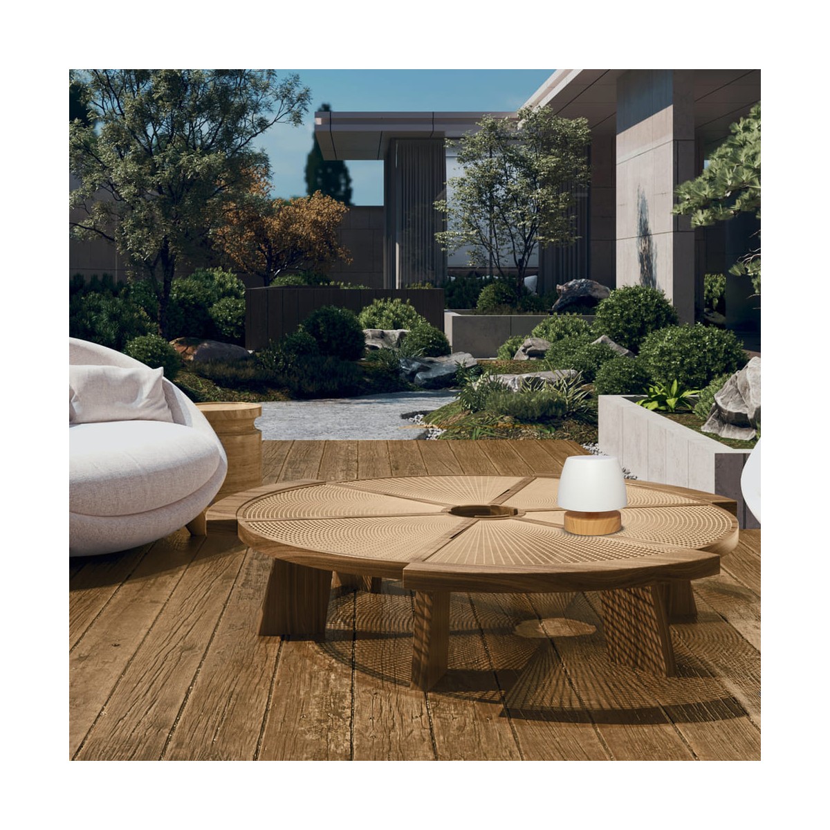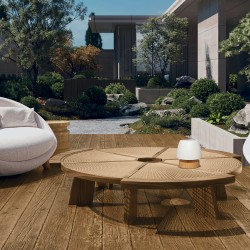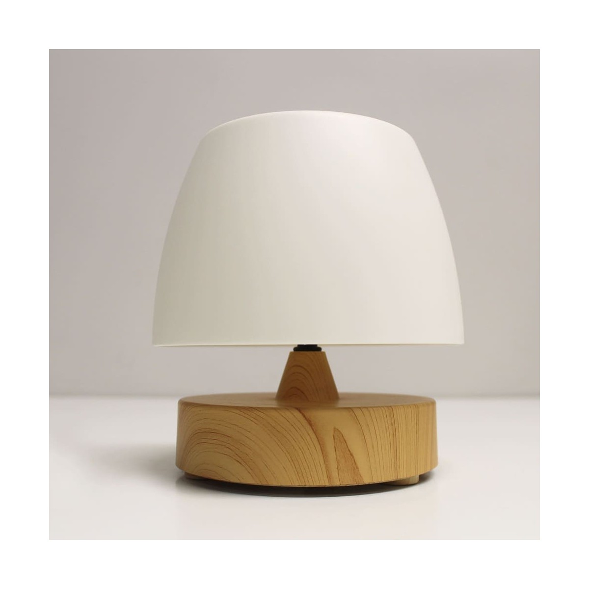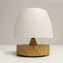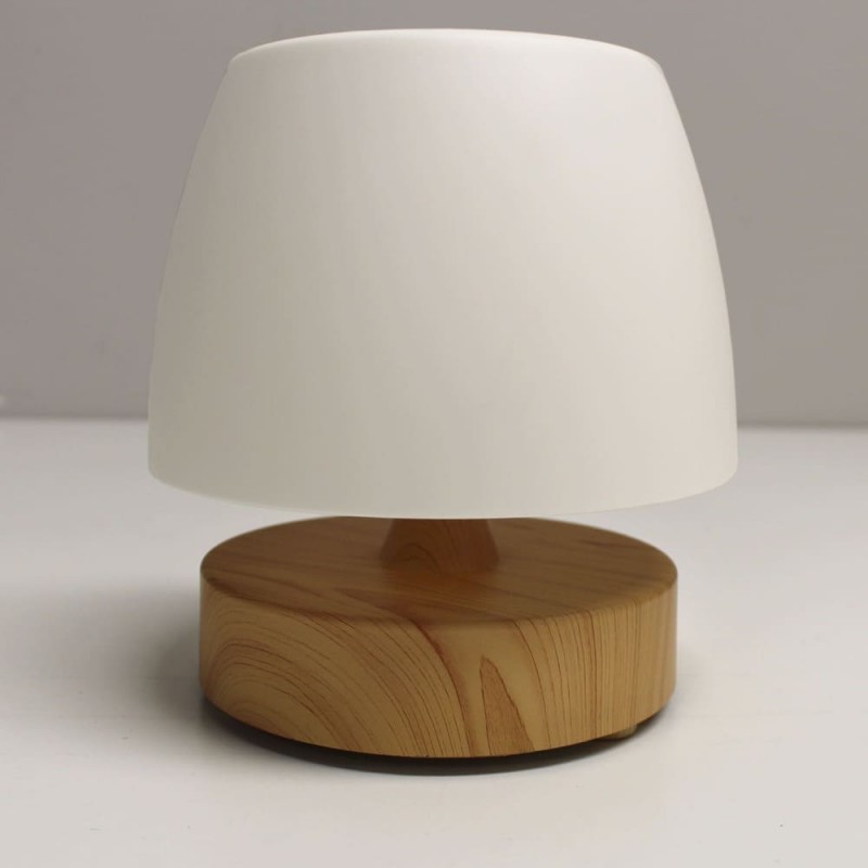 Lampe de table à LED Small avec batterie rechargeable. Lampe LED portable très pratique à utiliser sur les tables des terrasses, jardins et balcons comme éclairage pour les dîners et les réunions entre amis. Elle est dotée d'un éclairage LED intégré à intensité variable et s'allume et s'éteint facilement en appuyant sur la partie supérieure de la lampe. La base est en ABS à effet bois et le diffuseur est en polycarbonate blanc, ce qui crée une lumière uniforme. Vous pouvez l'utiliser sans avoir besoin d'une prise de courant car elle est équipée d'une batterie rechargeable d'une autonomie de 8 heures.