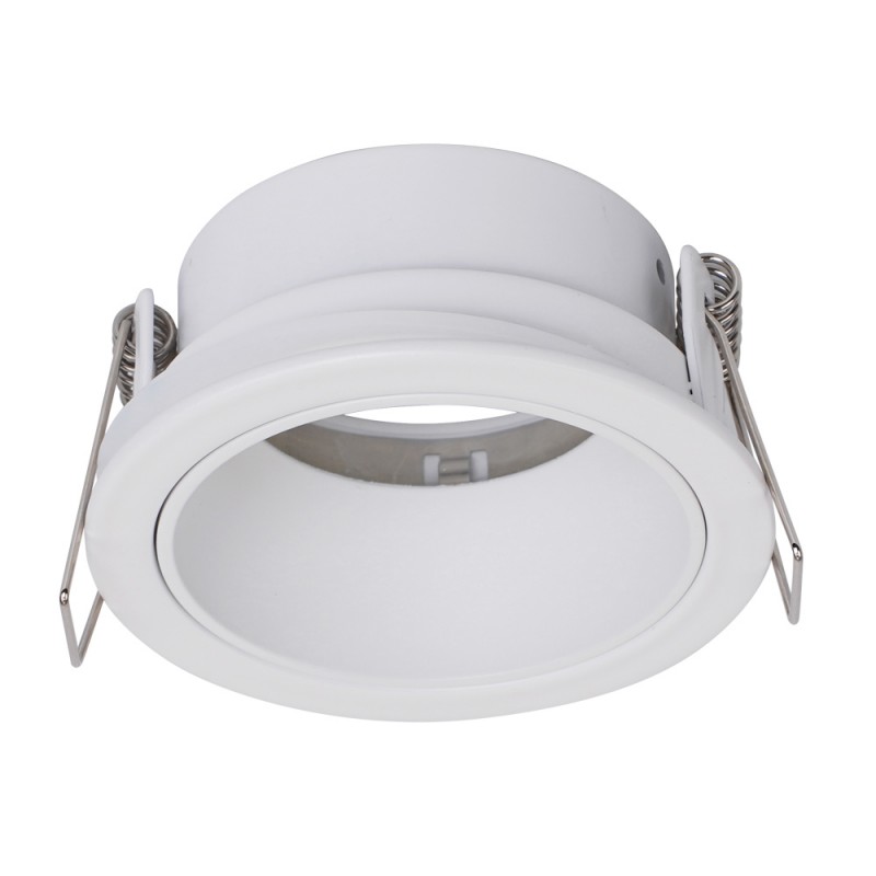 Luminaire encastré rond blanc pour l'éclairage extérieur. Luminaire encastré blanc conçu pour les projets d'éclairage contractuel dans les salles de bains, les balcons et les espaces extérieurs. Fabriqué en blanc avec un point lumineux fixe pour une ampoule GU10.