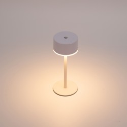 Lampe de table rechargeable Pope pour jardins et terrasses. Lampe de table moderne conçue pour apporter un éclairage chaleureux lors des dîners et des réunions en plein air. La lumière s'allume simplement en appuyant sur le dessus de la lampe. De plus, vous pouvez modifier l'intensité lumineuse.